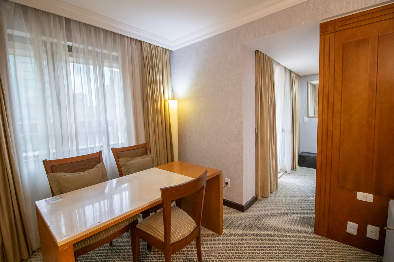 - O Complexo oferece uma variedade de restaurantes, cafés, lojas, academia (taxa adicional) e segurança 24 horas