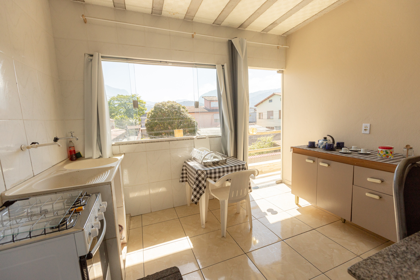 - A cozinha oferece fogão, forno, geladeira, freezer, chaleira, potes, xícaras, jogo americano e utensílios básicos(exceto sal e óleo)