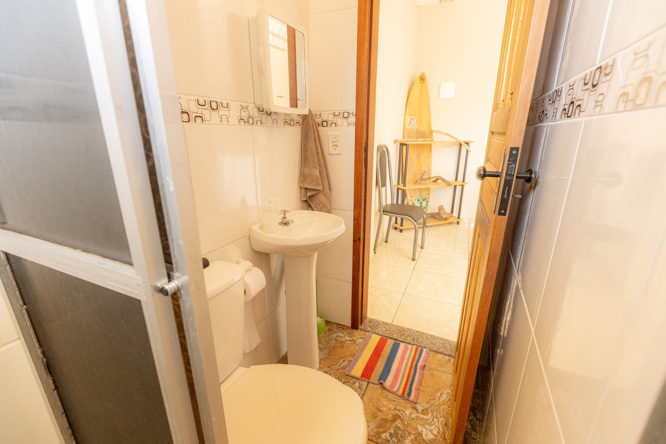- O banheiro possui chuveiro elétrico e box de acrílico