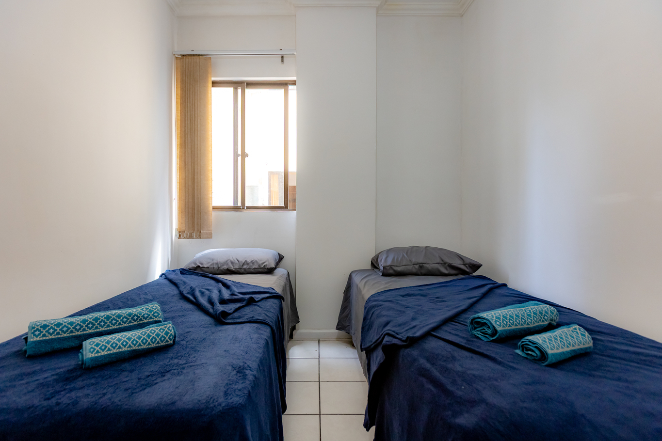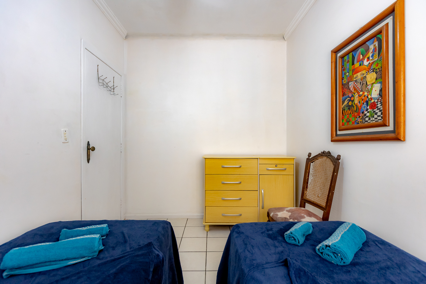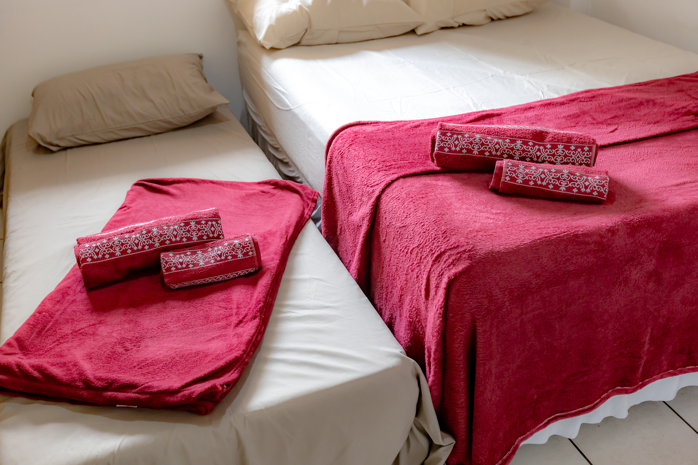 - Quarto 2: 2 camas de solteiro (podem ser unidas para formar uma cama de casal), ventilador de teto