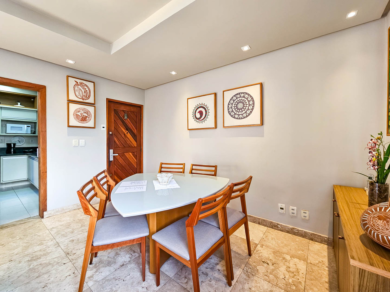 - Sala com ar-condicionado, smart TV, poltrona, sofá e mesa para 6 pessoas