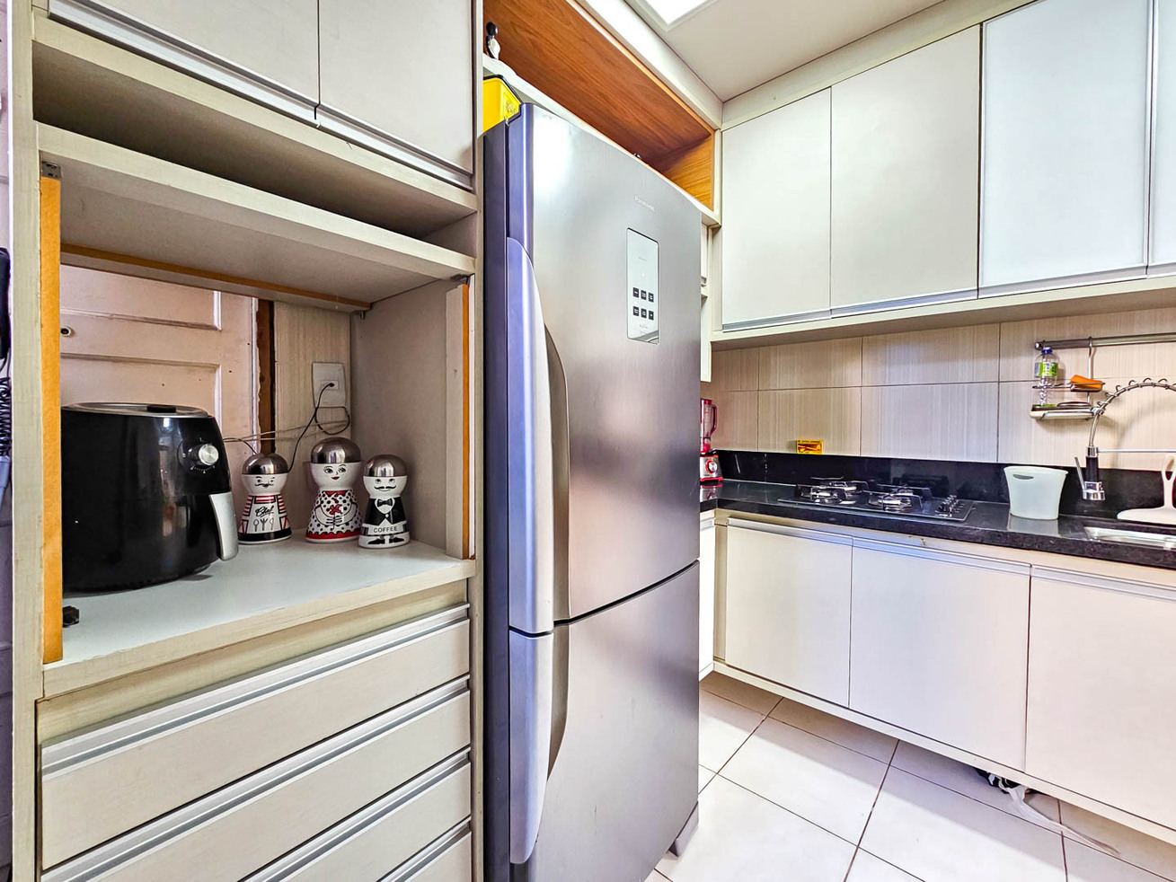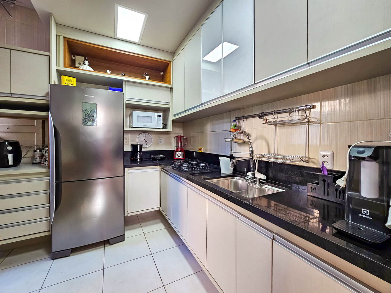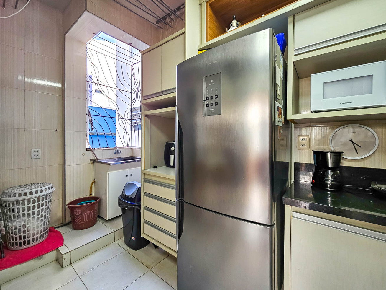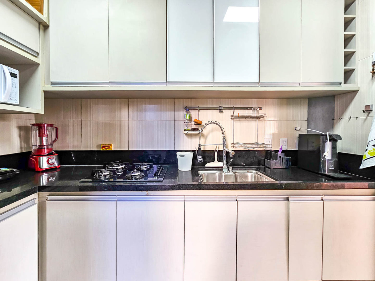 - Cozinha equipada com purificador de água, fogão, geladeira, freezer, micro-ondas, cafeteira, fritadeira, torradeira e utensílios completos(exceto óleo e sal)