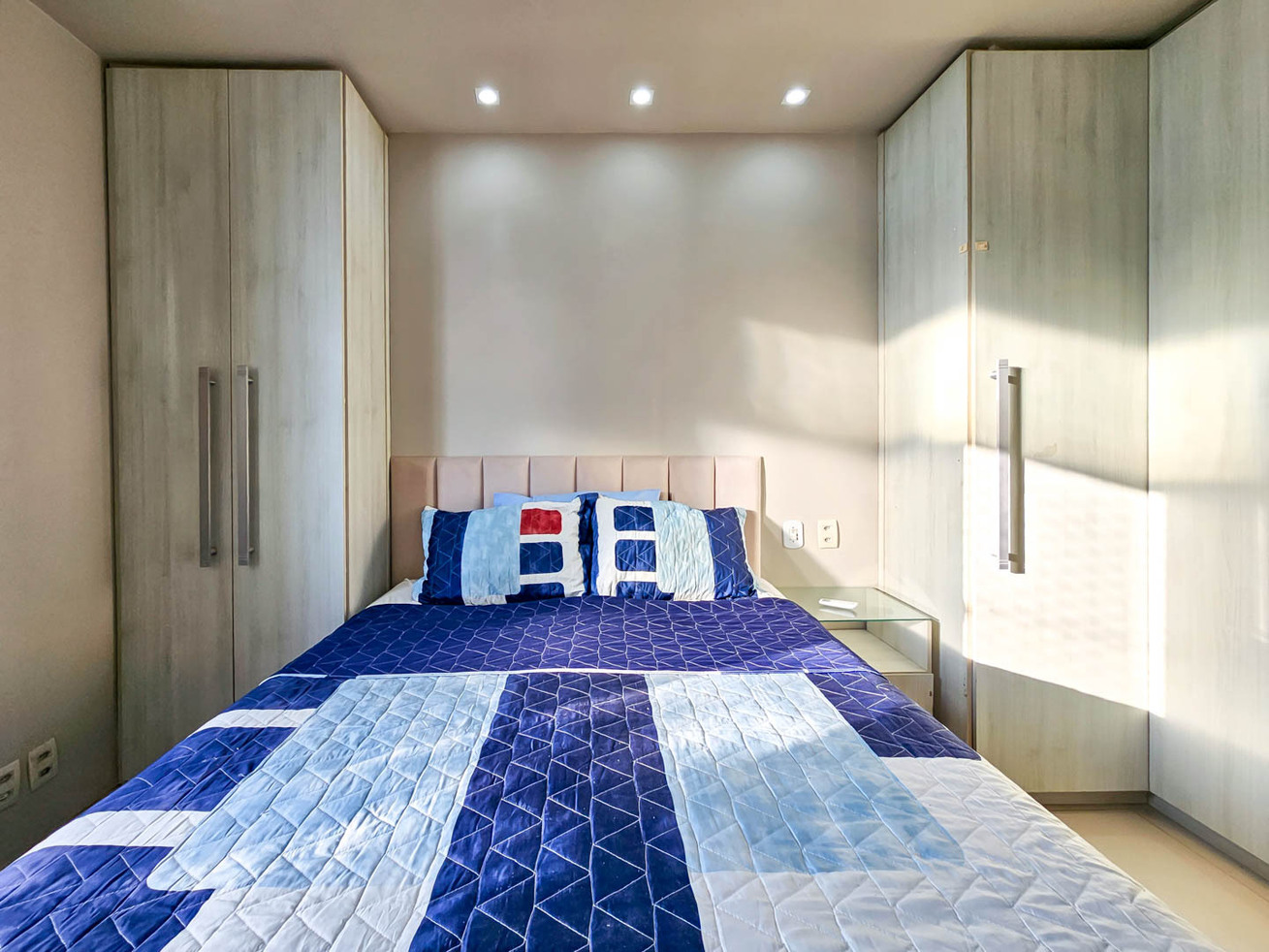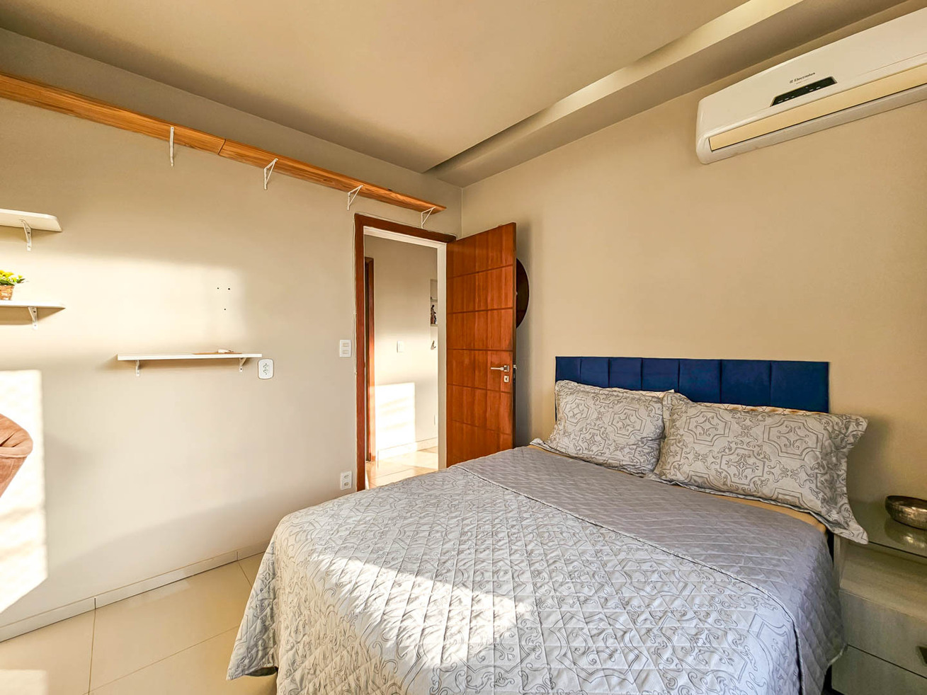 - Quarto 2: cama de casal, ar-condicionado e armário