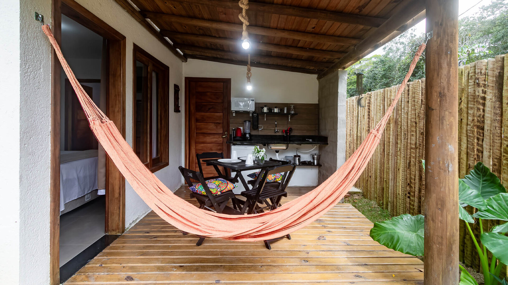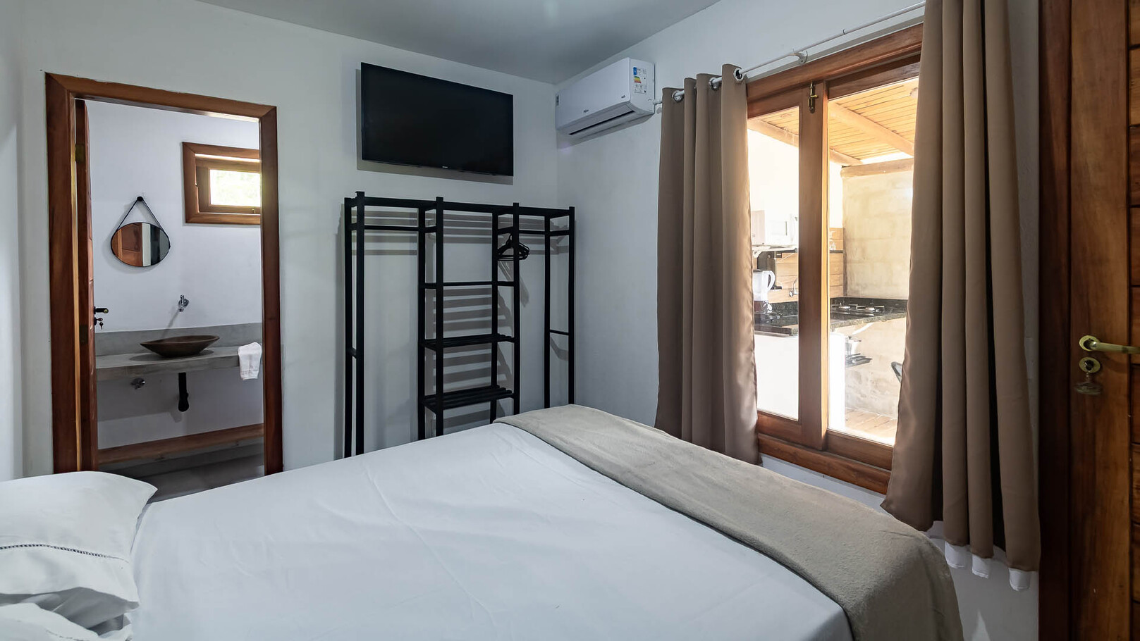 No coração de Arraial d’Ajuda, este loft de 20 m² foi pensado para casais que buscam praticidade e charme durante a estadia. O espaço conta com cama de casal confortável, ar-condicionado, Smart TV e Wi-Fi. A cozinha integrada em varanda gourmet, com mesa para 4 lugares e frigobar, traz o clima descontraído do litoral. Em condomínio fechado com lazer, oferece espreguiçadeiras, quadra e ducha externa. Reserve agora e viva dias leves em Arraial!