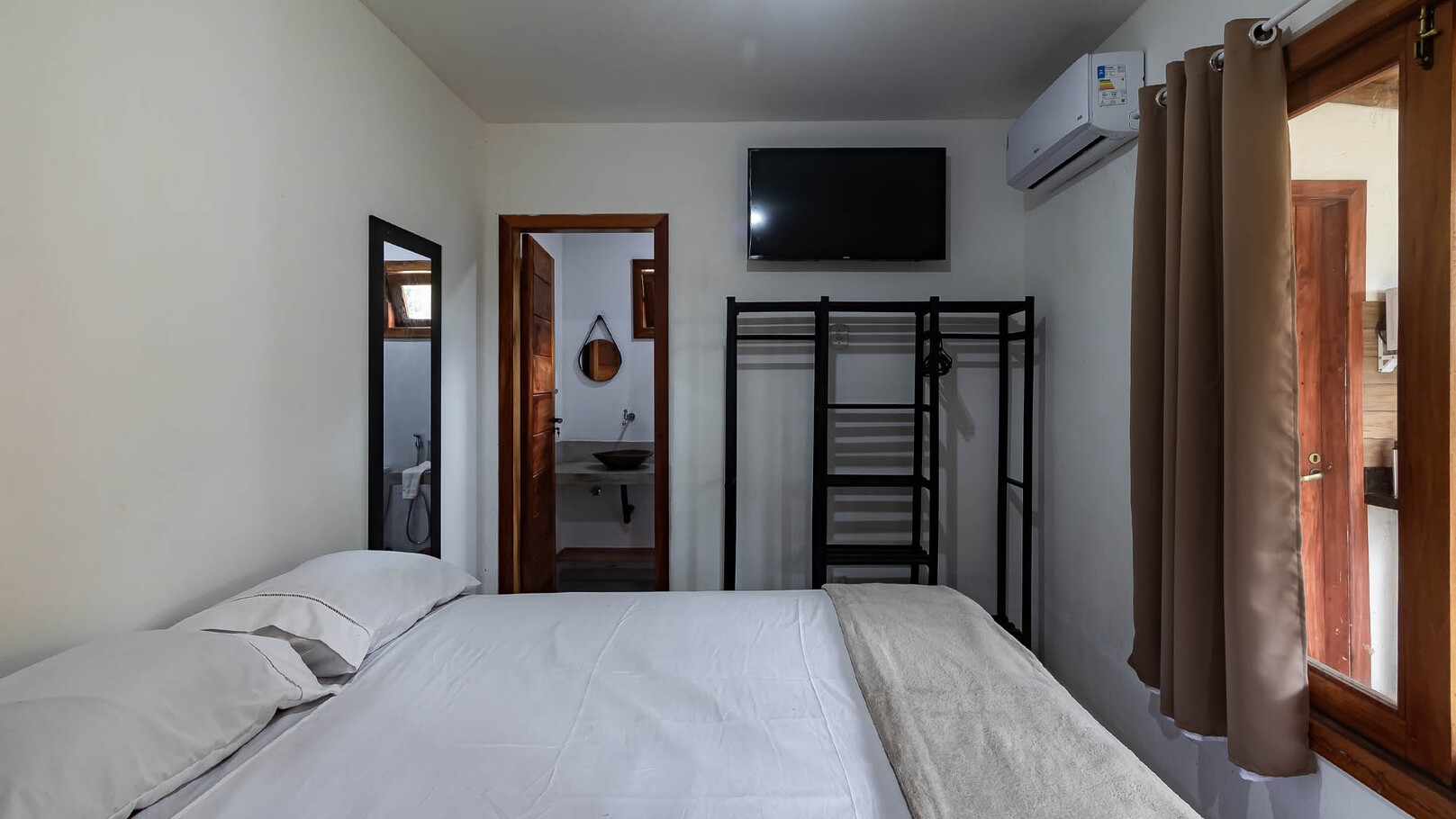 - Loft com cama de casal, ar-condicionado, armário e Smart TV