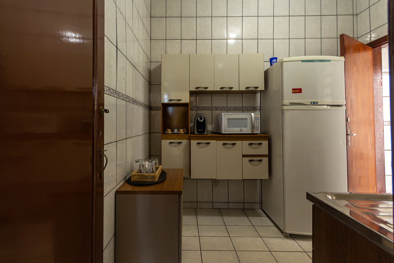 - Cozinha equipada com fogão, forno, geladeira, micro-ondas e utensílios básicos para preparo de refeições(exceto óleo e sal)