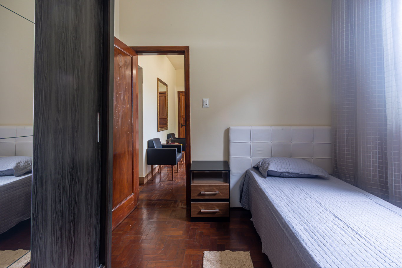 - Quarto 2: cama de solteiro, armário, edredom e protetor de colchão