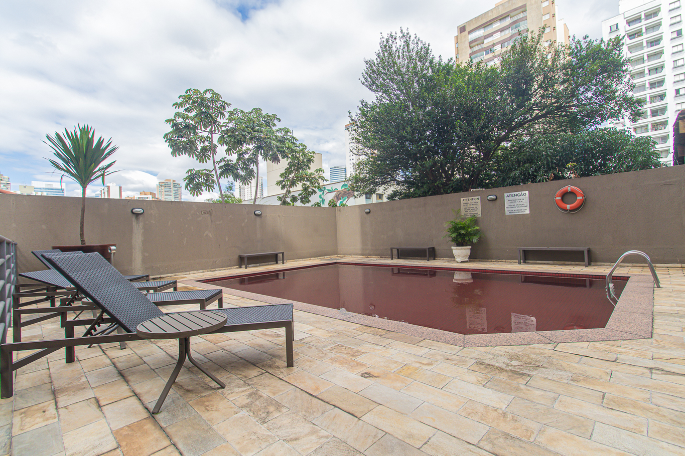 - Prédio com academia, sauna, espreguiçadeiras, guarda-sol e salão de jogos