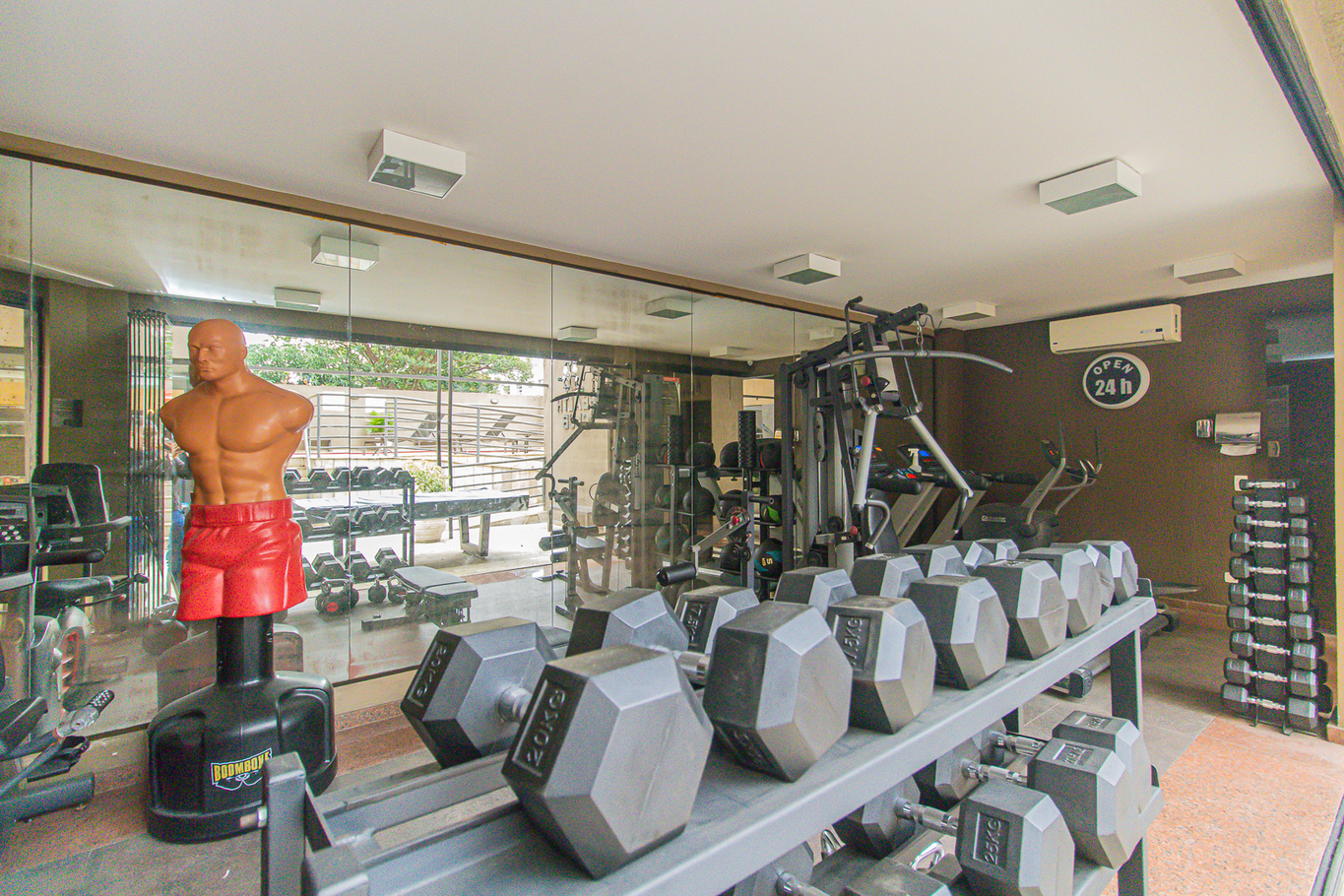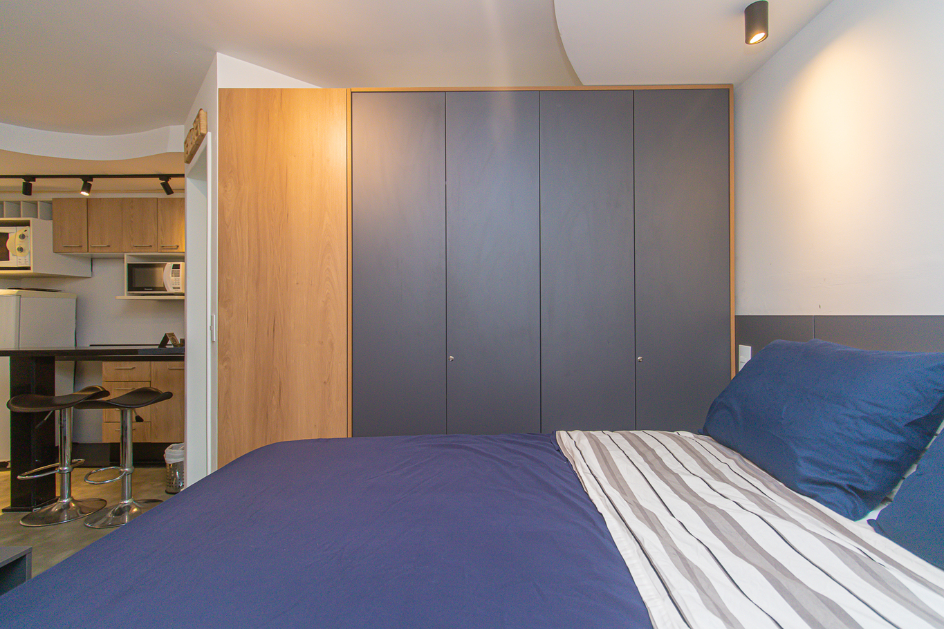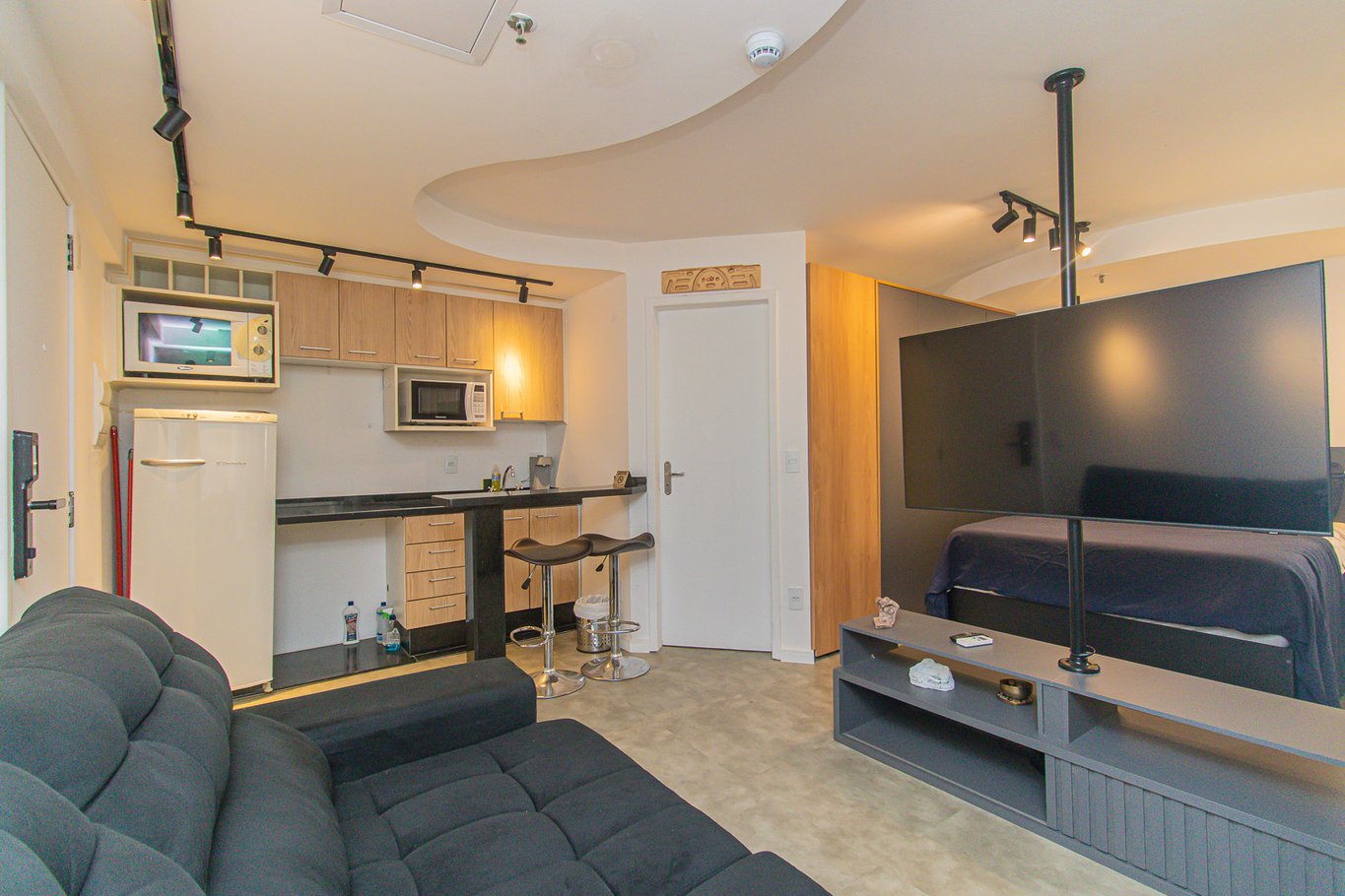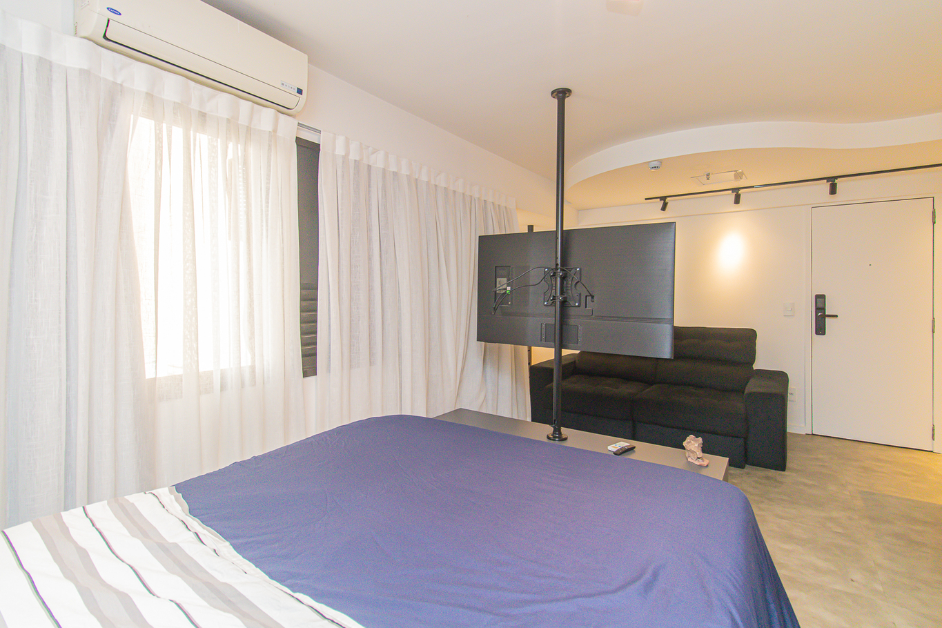 - Cama de casal, armário, smart TV e ar-condicionado
