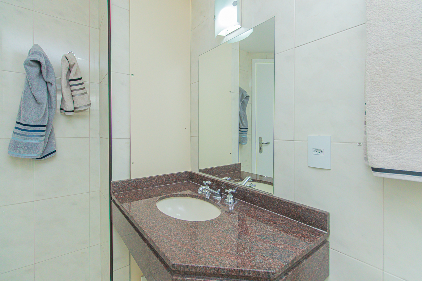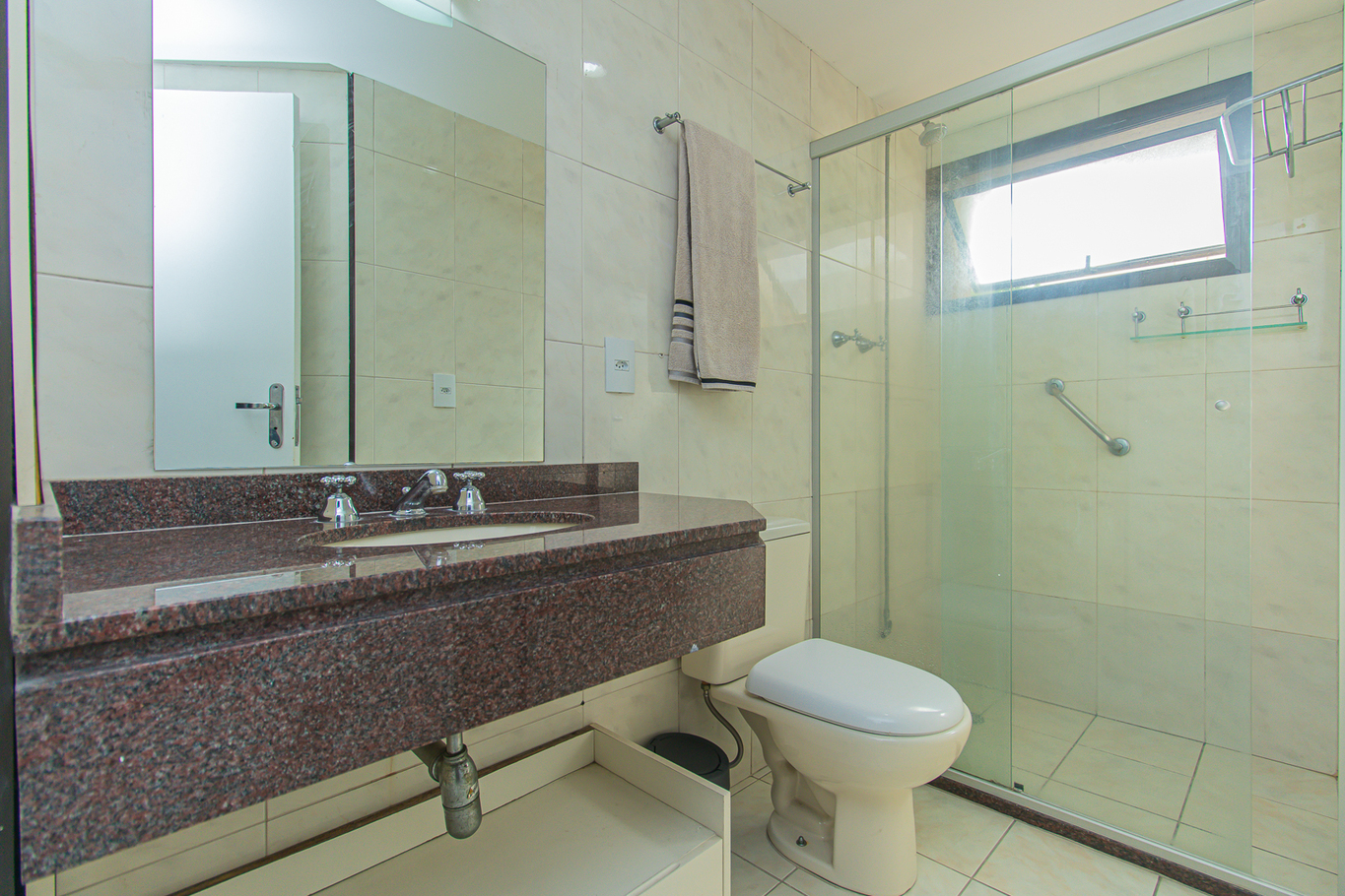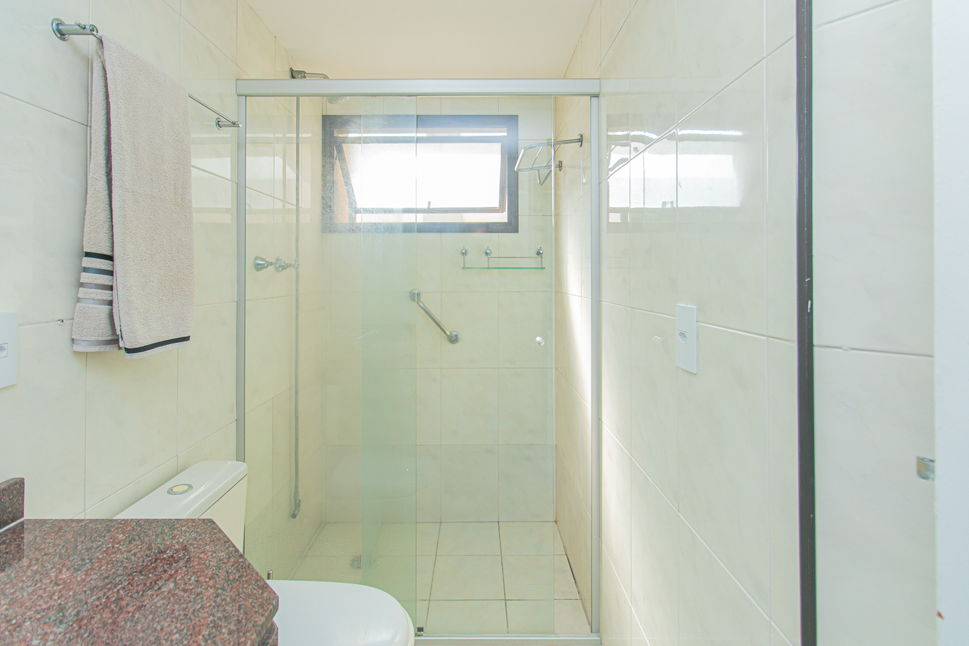 - Banheiro com box de vidro e chuveiro a gás