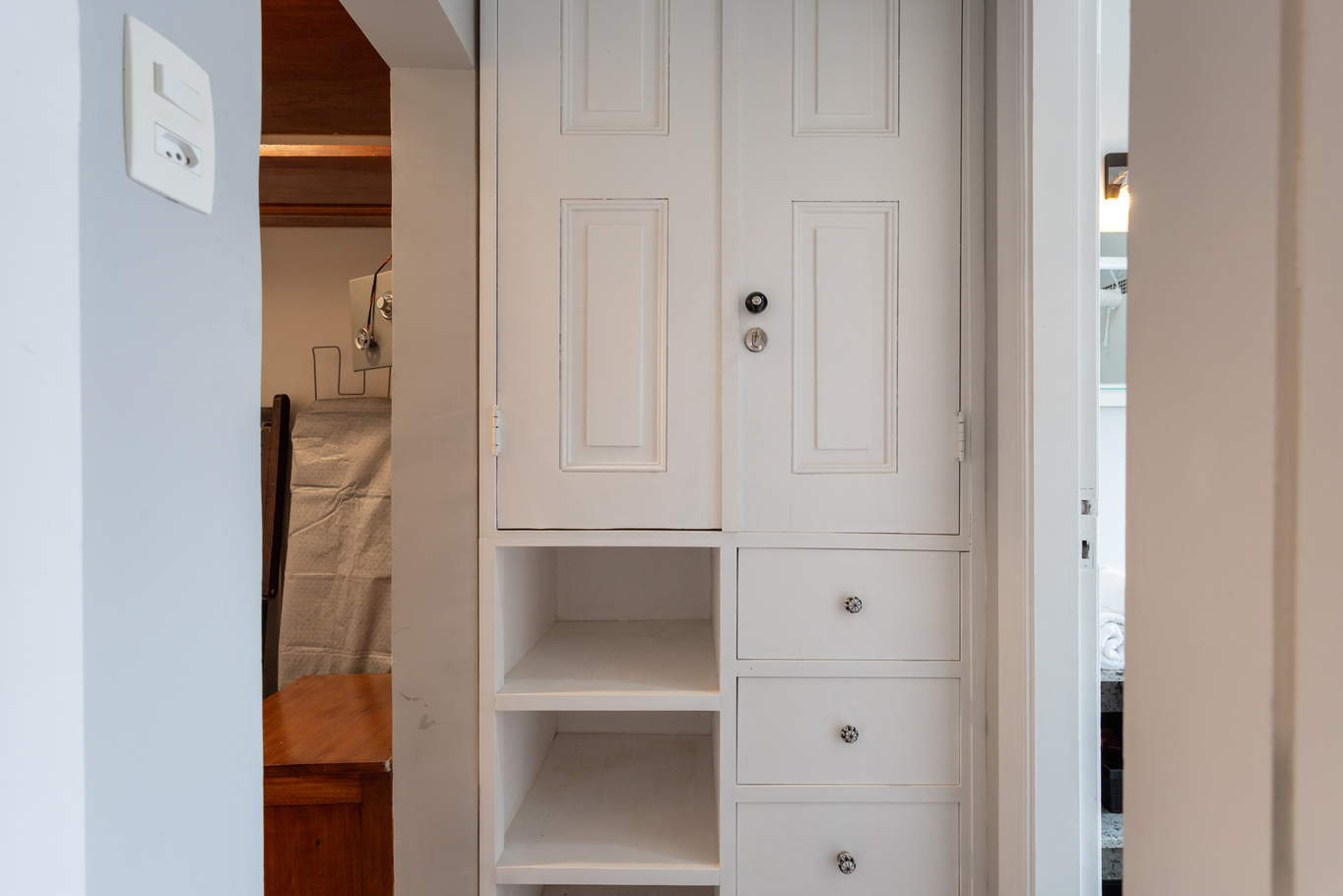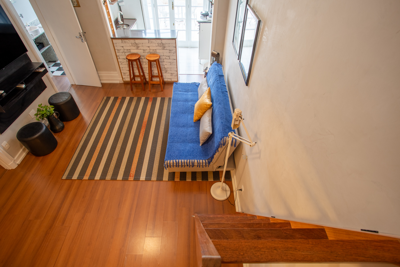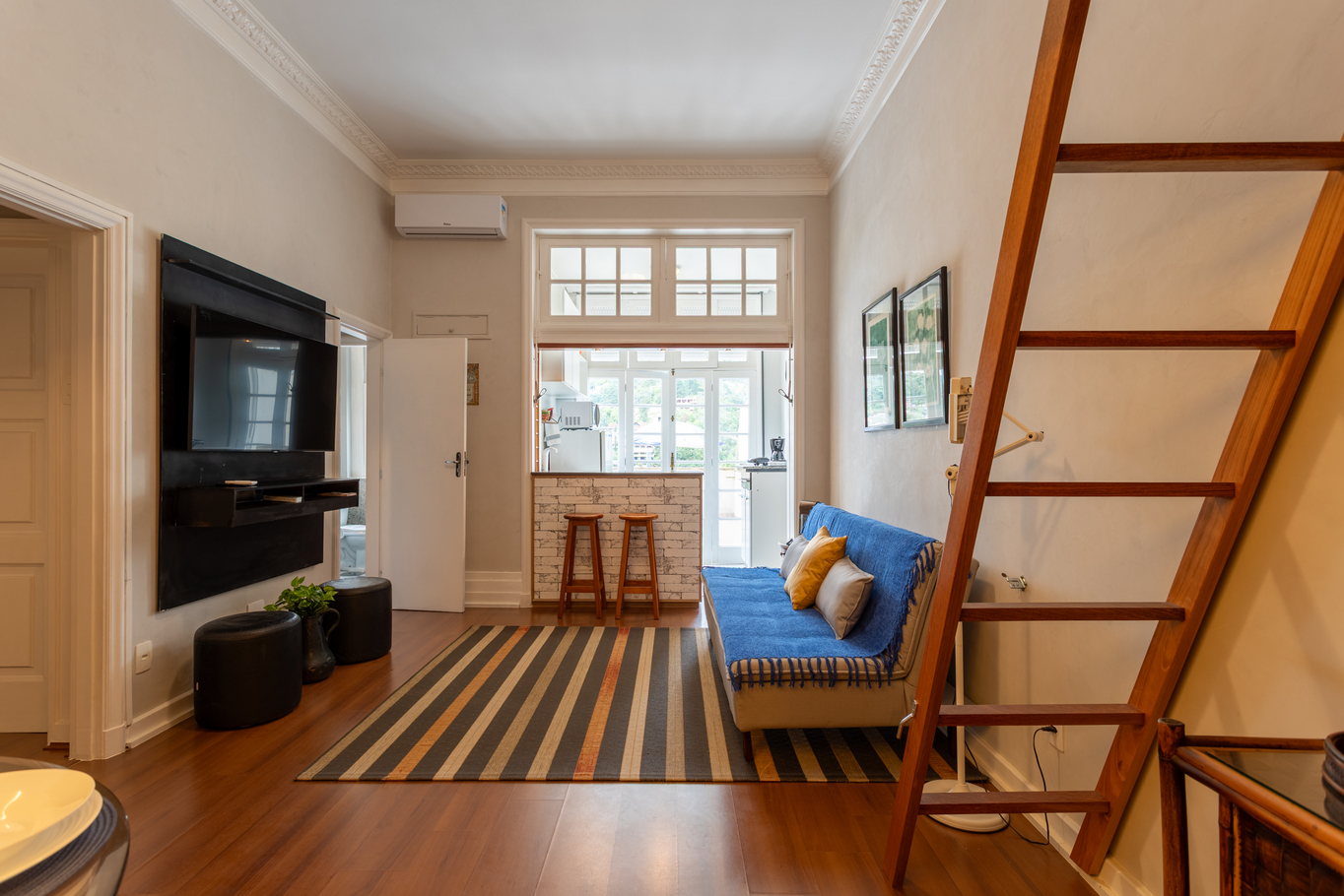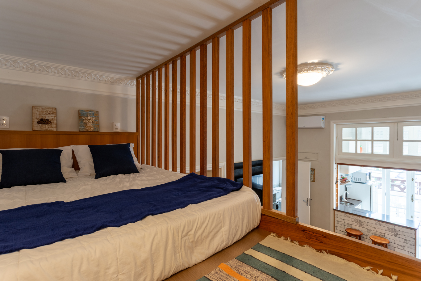 - Quarto no mezanino com cama de casal, Smart TV, armário e ar-condicionado