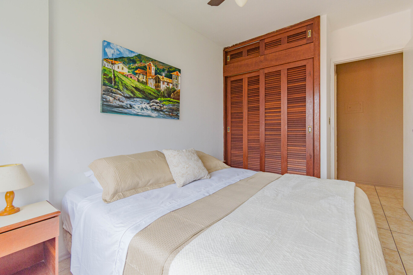 - 1 quarto com cama de casal, armário, mesas de cabeceira e ar-condicionado