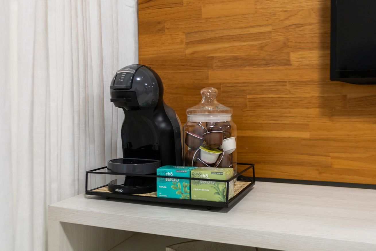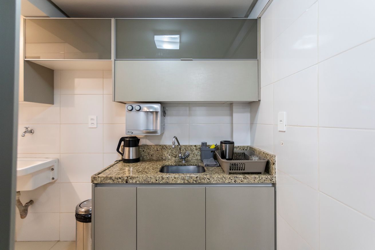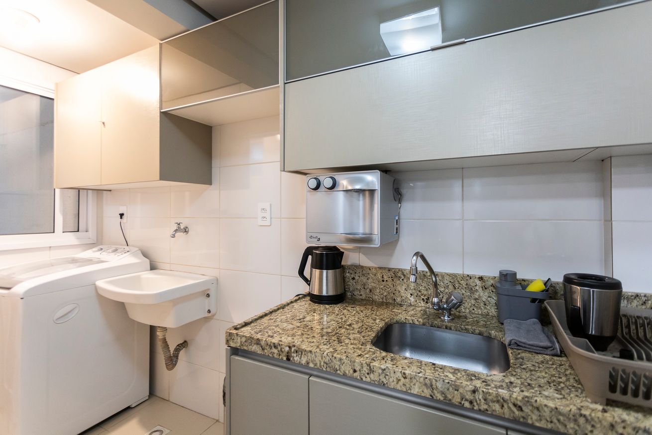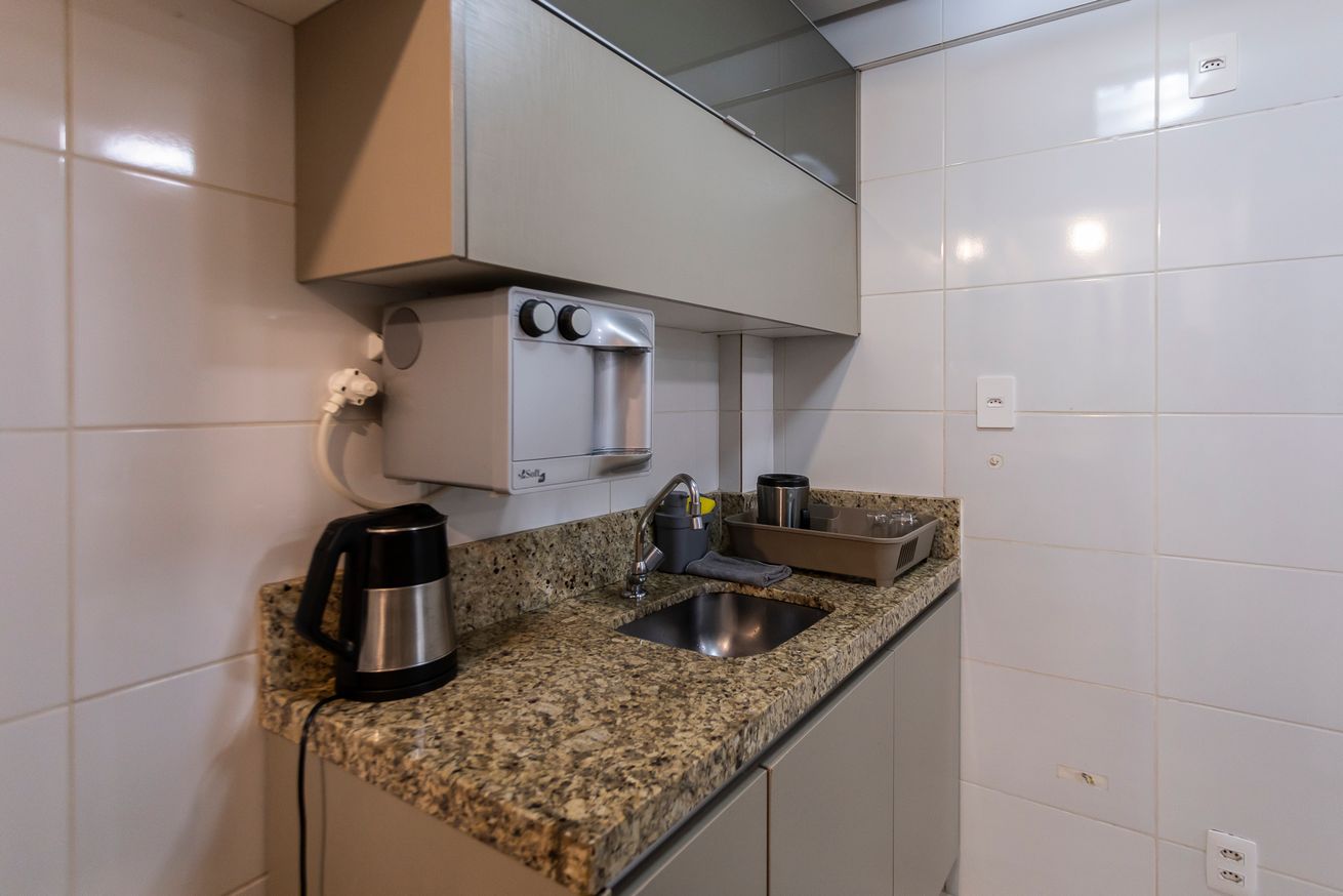 - Cozinha equipada com geladeira, microondas, cafeteira, liquidificador, utensílios e itens diversos (exceto óleo e sal)