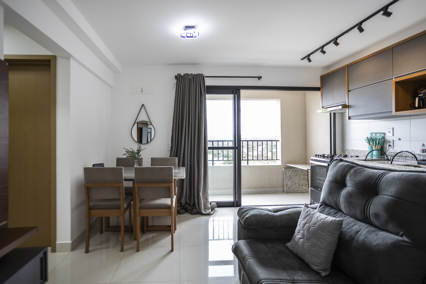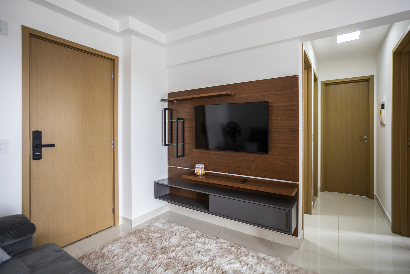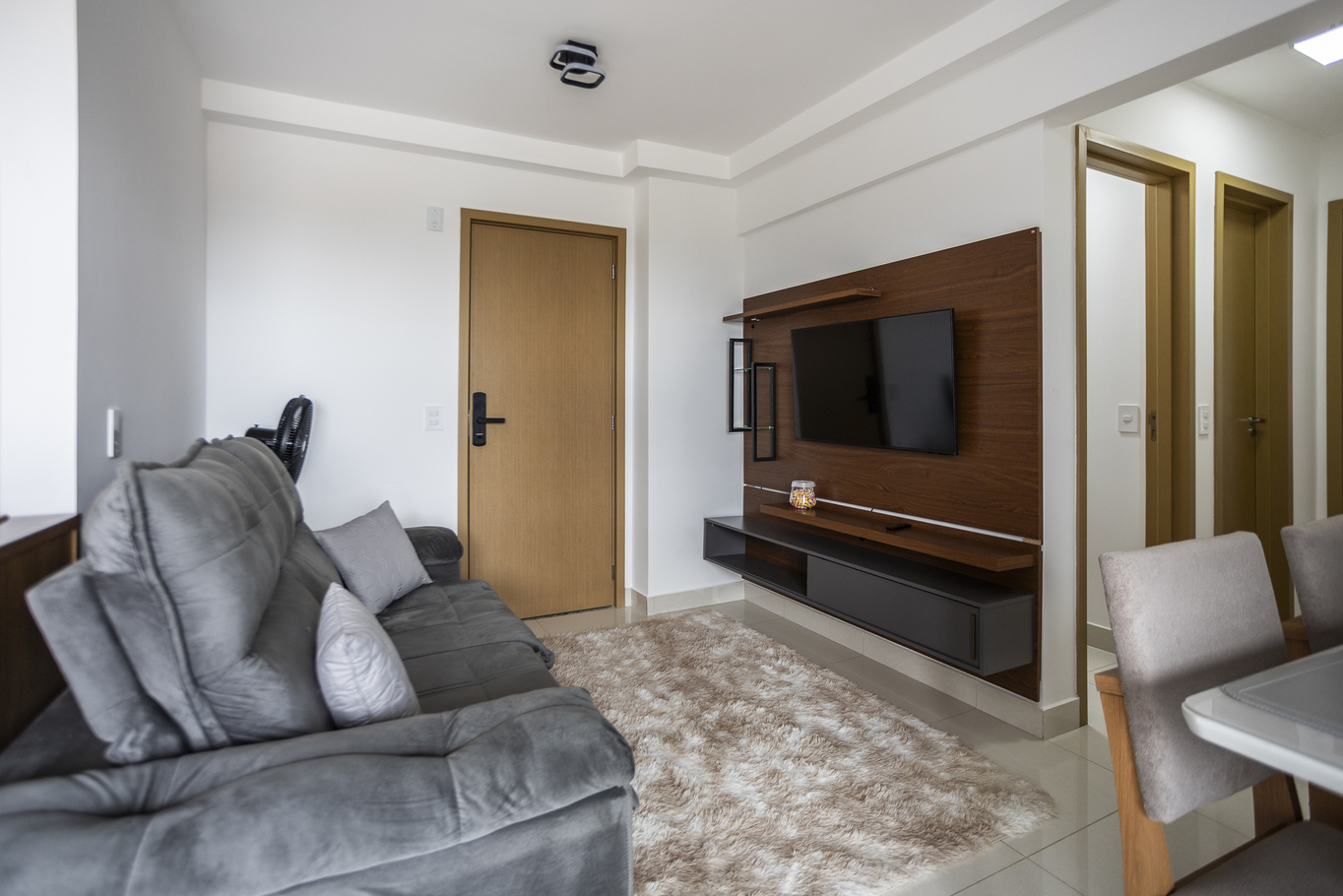 Este apartamento no Centro de Goiânia foi pensado para quem busca praticidade sem abrir mão do conforto. Com 3 quartos bem distribuídos, suíte aconchegante e uma sala convidativa com smart TV, o espaço acomoda até 8 hóspedes com tranquilidade. A cozinha completa facilita as refeições em família, enquanto o Wi-Fi estável e a fechadura eletrônica tornam a estadia simples e funcional. Um lar temporário que une comodidade, localização estratégica e atmosfera acolhedora. Reserve Já!