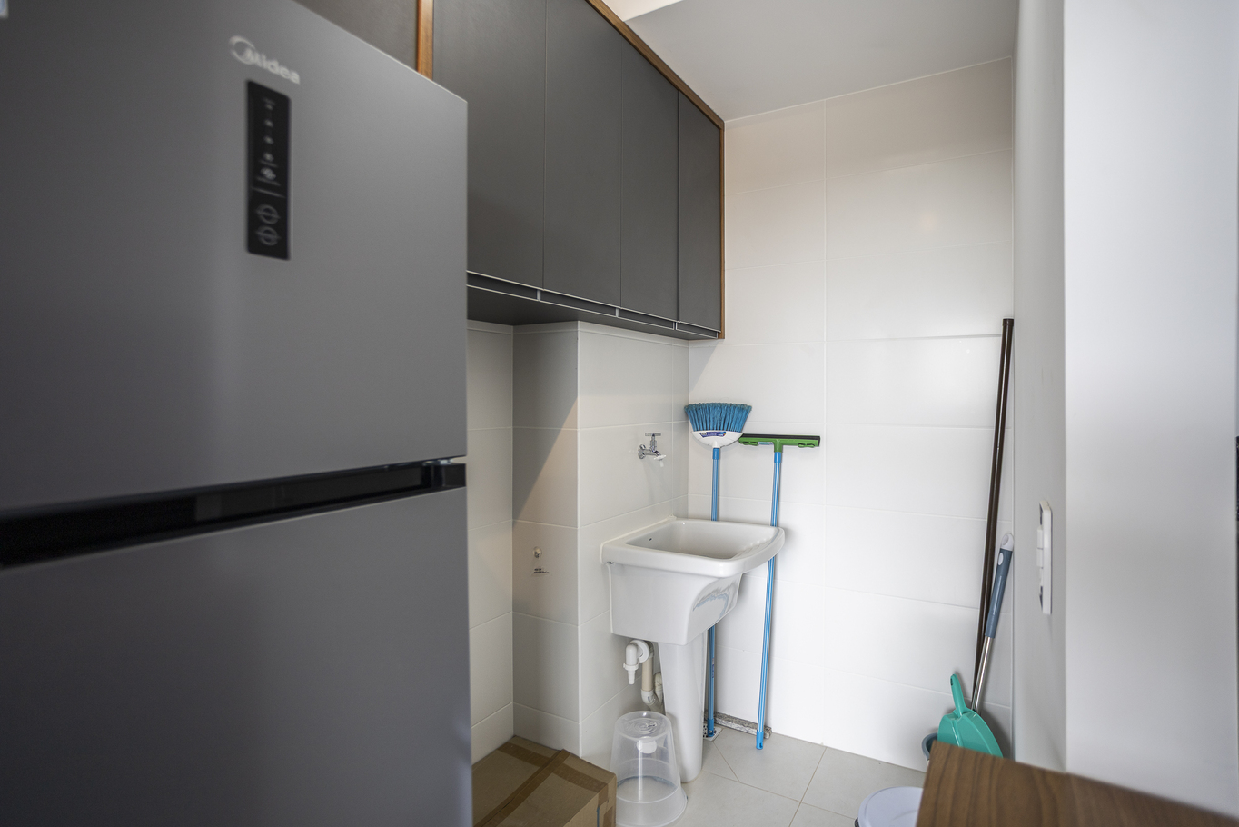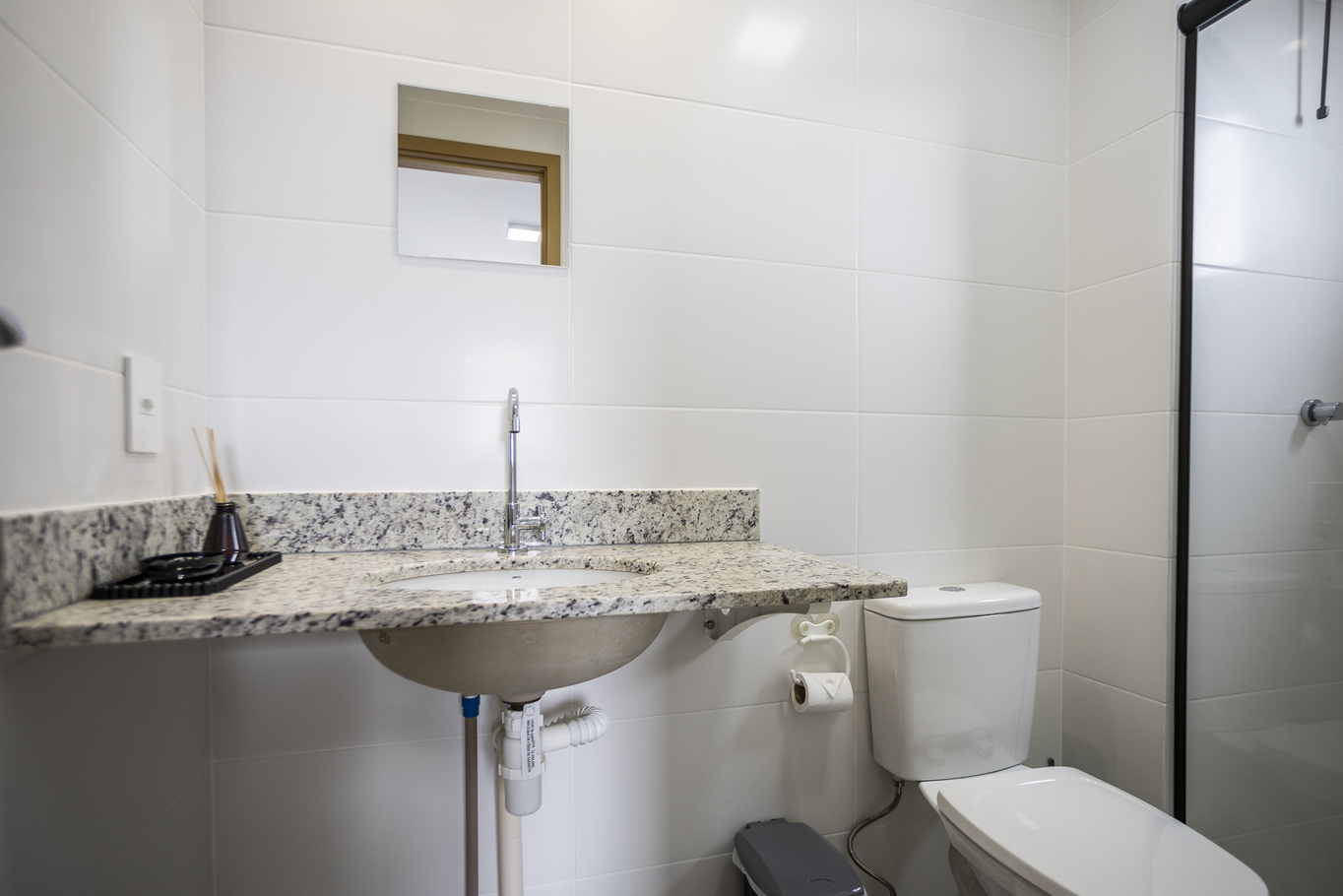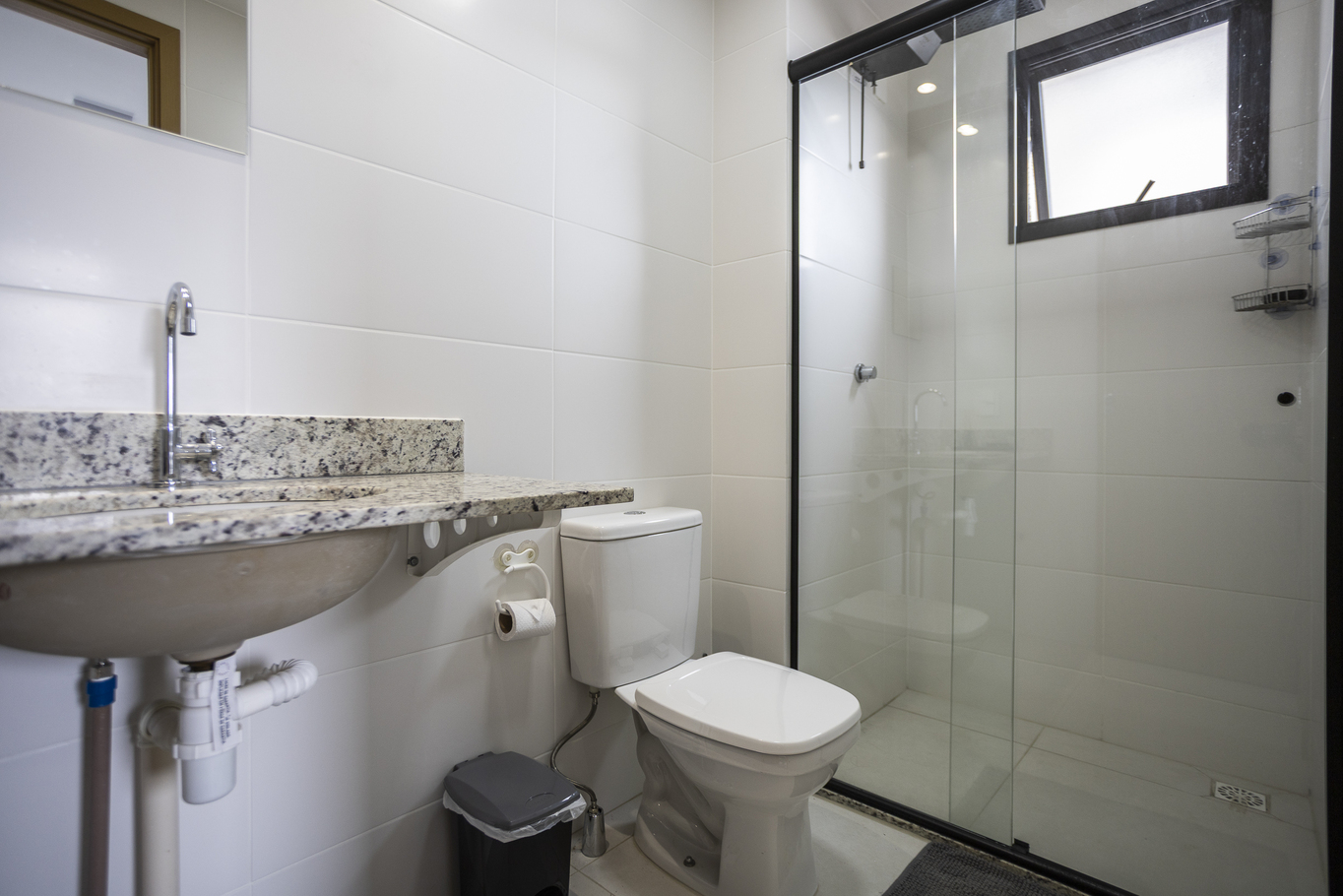 - Banheiro social com chuveiro elétrico e box