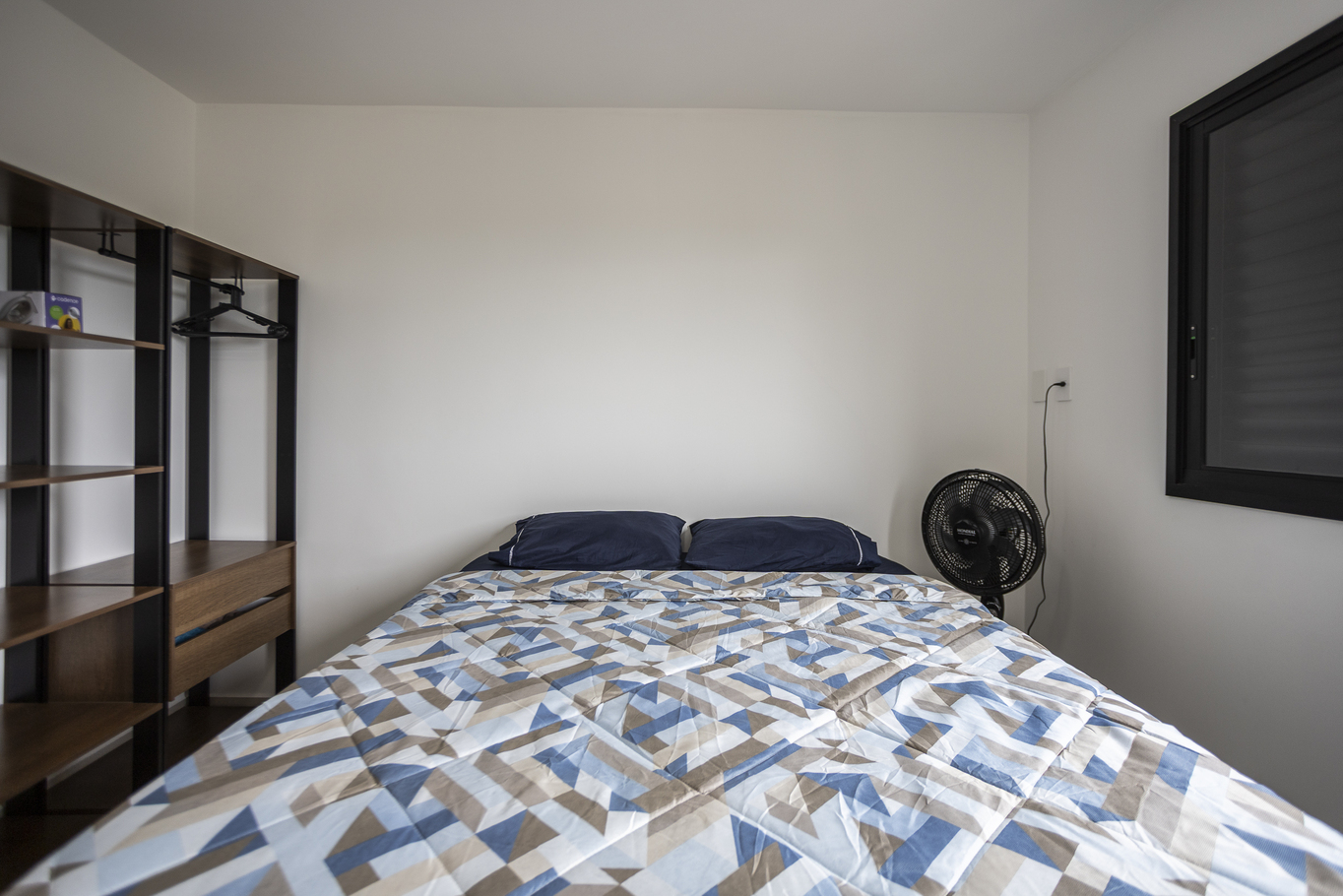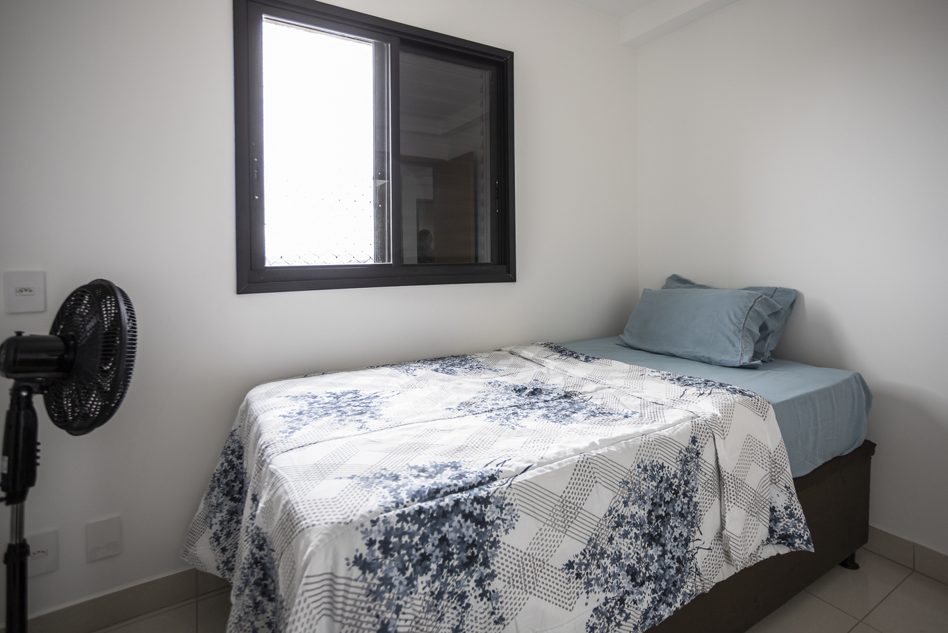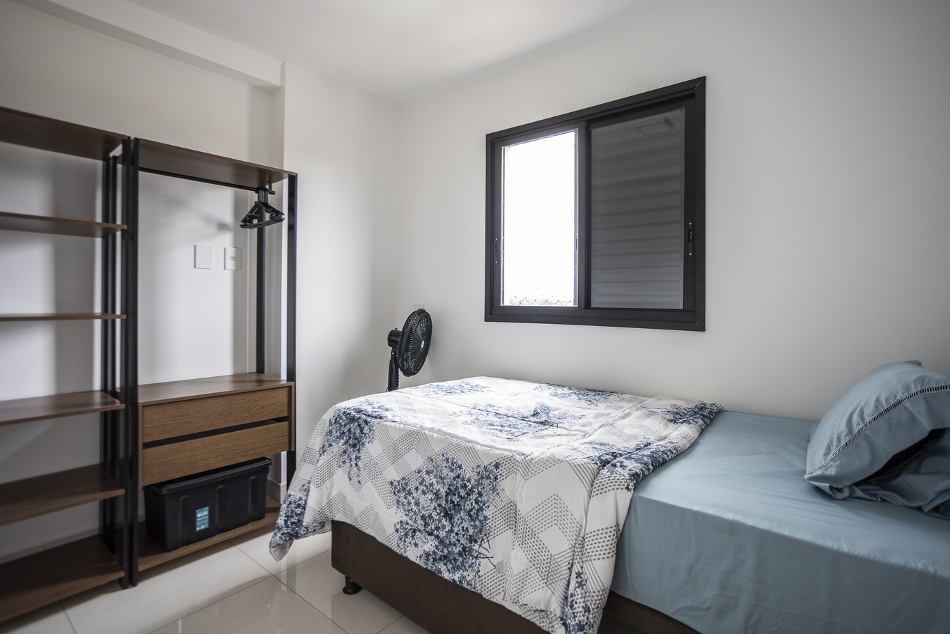 - Quarto 3 com 1 cama de solteiro, armário e ventilador de teto
