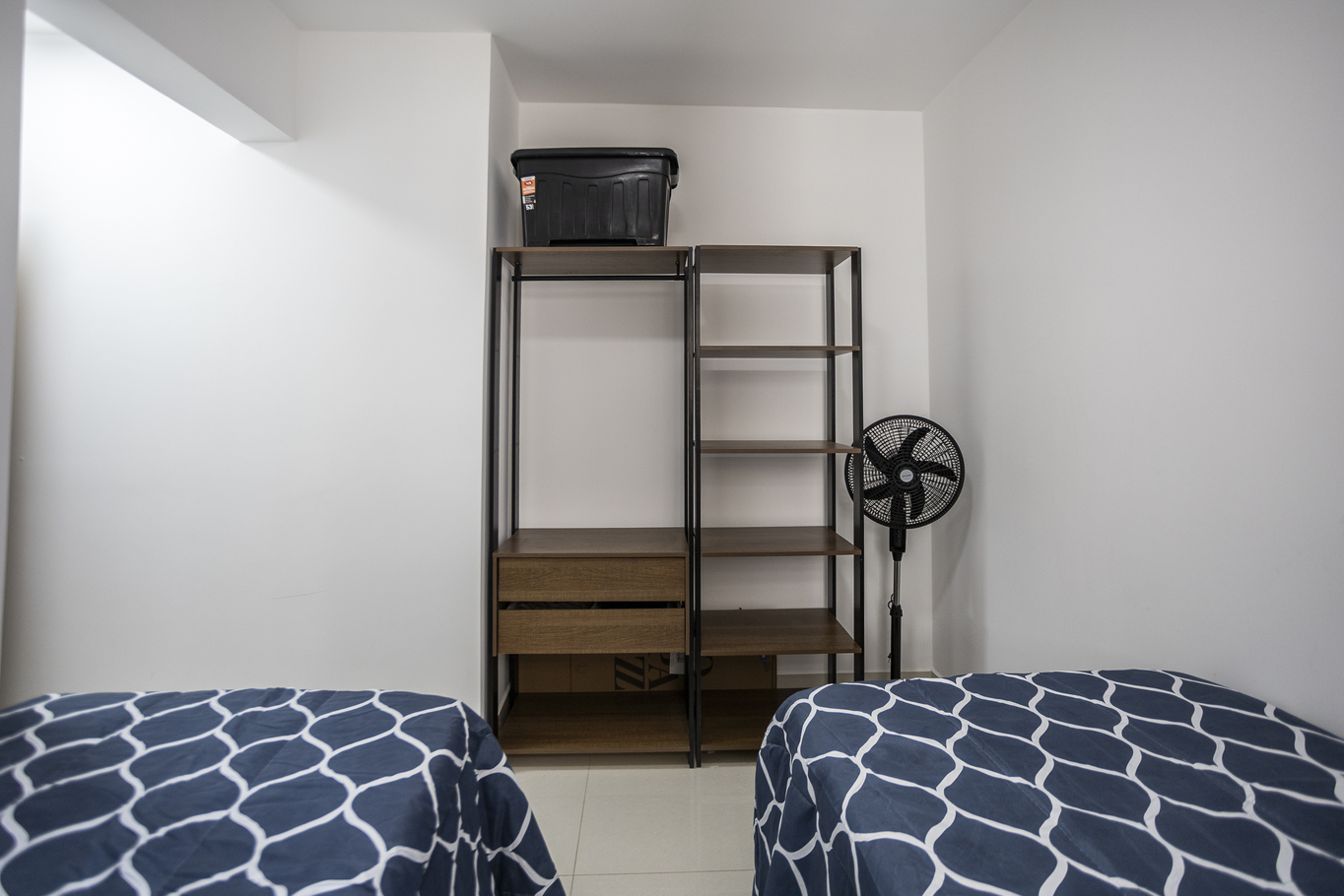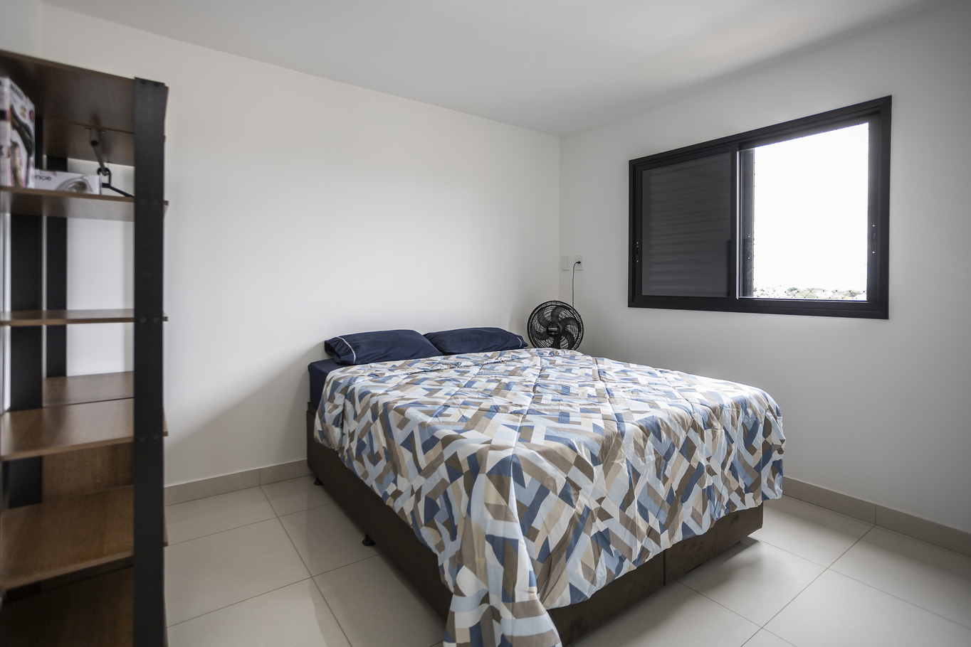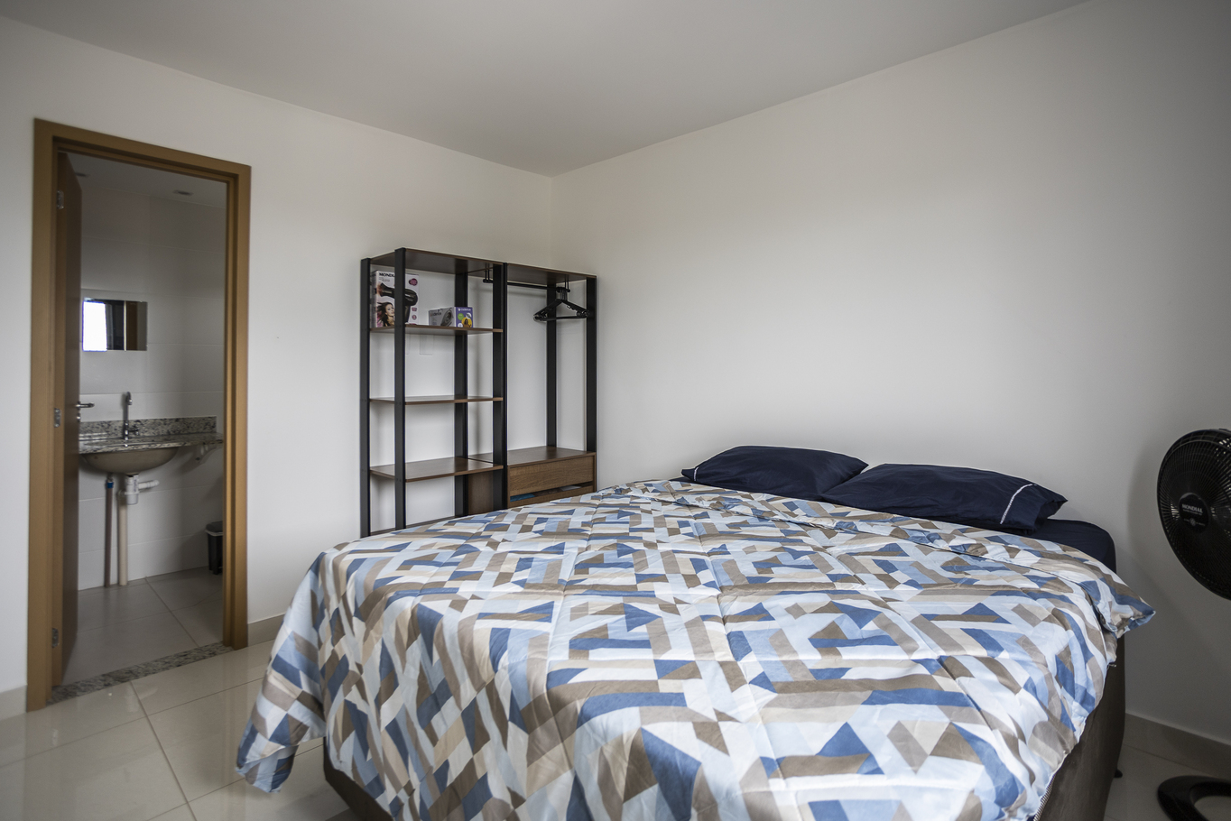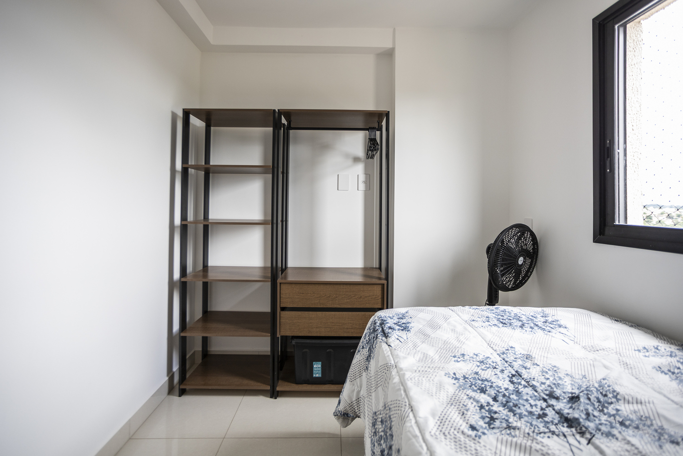 - Quarto 3 com 1 cama de solteiro, armário e ventilador de teto