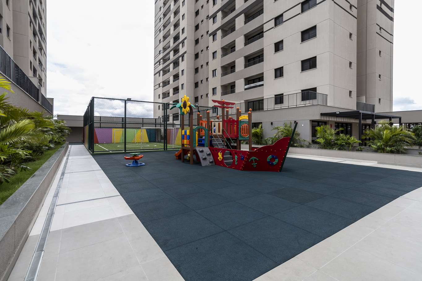 - Churrasqueira e quadra esportiva no condomínio
