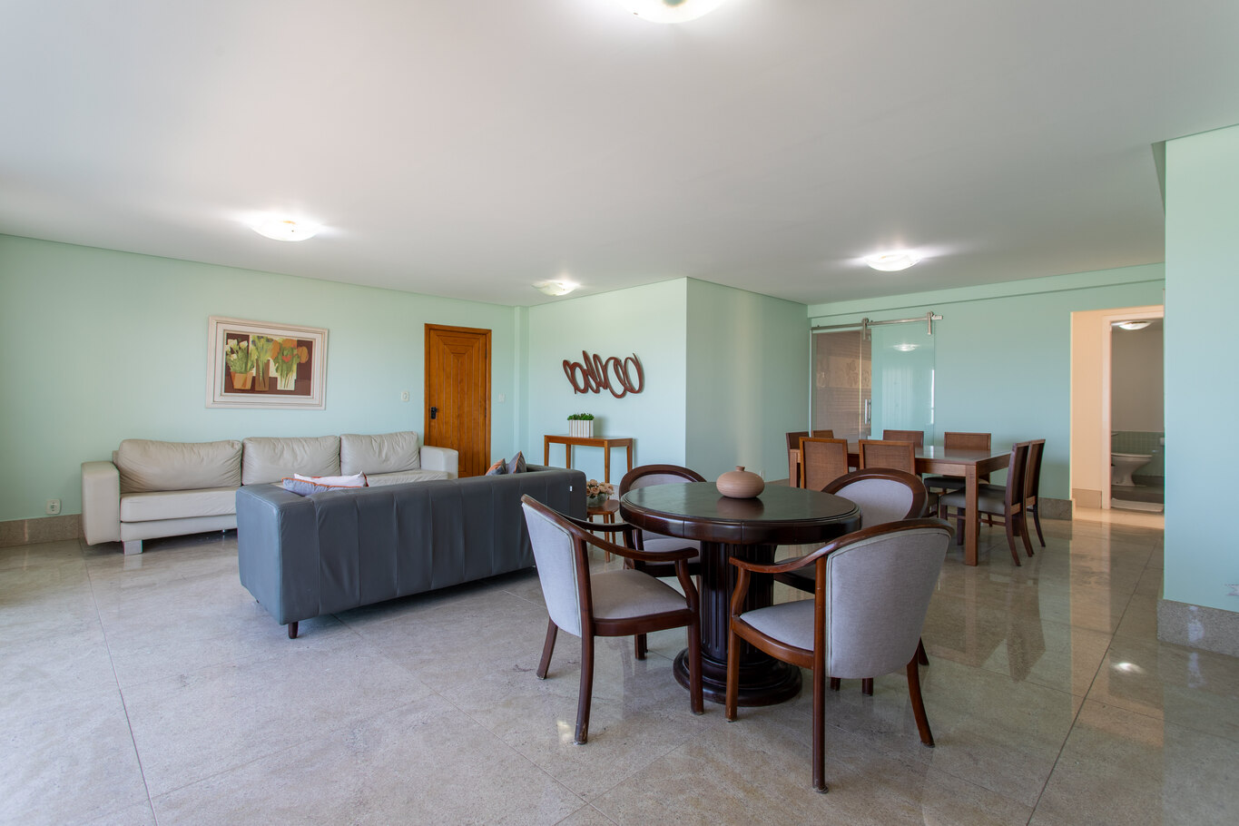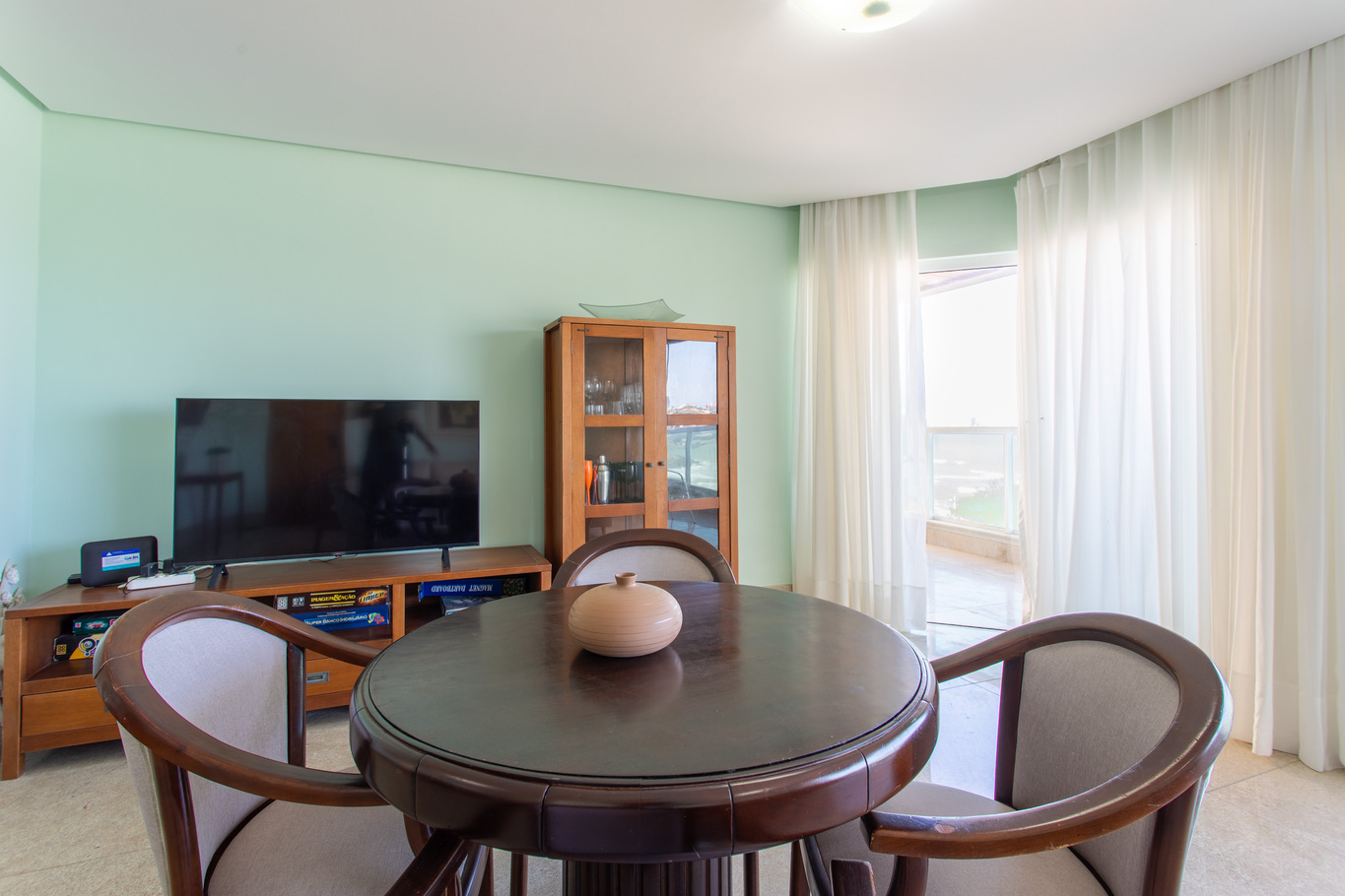 - Sofá confortável com smart TV, mesa de jantar e smart TV