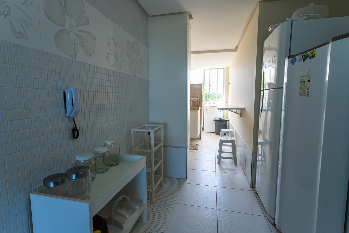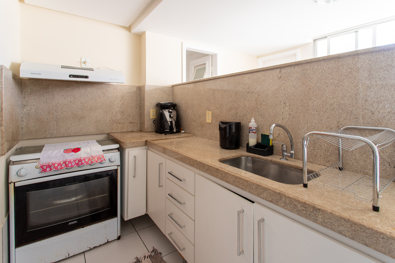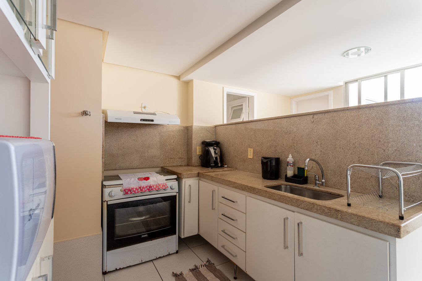 - Cozinha completa com fogão, forno, geladeira, freezer, purificador de água, micro-ondas, fritadeira, cafeteira e utensílios de cozinha(exceto óleo e sal)