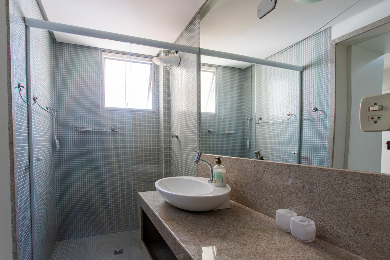 - Suíte 1: 1 cama de casal, ar-condicionado, armário e banheiro privativo