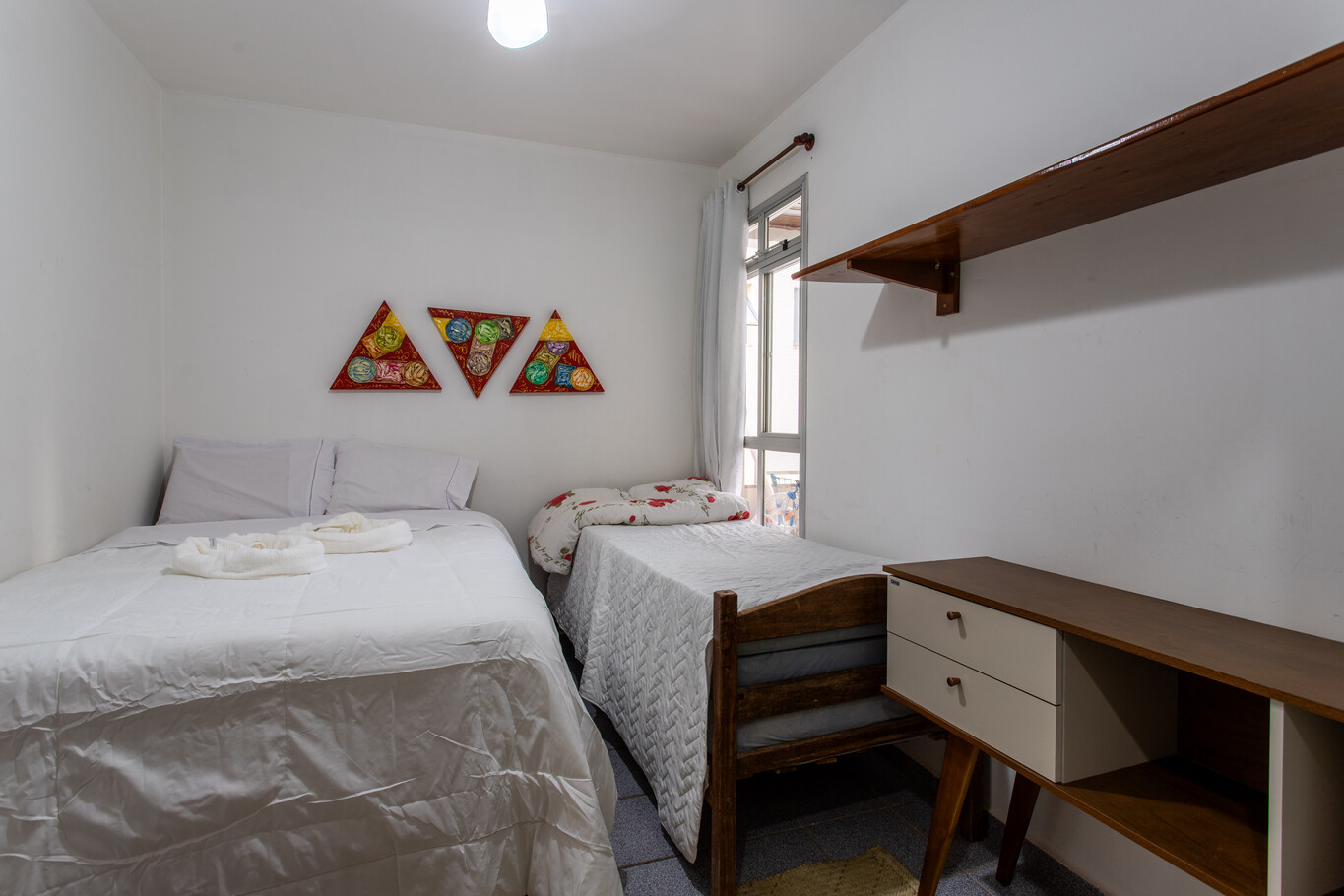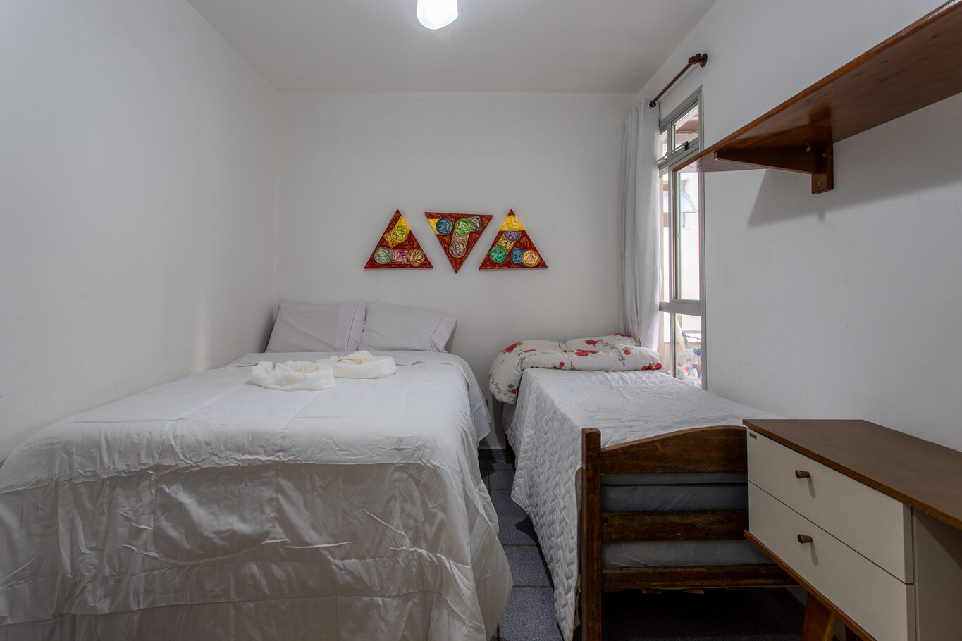 - Quarto 2: cama de casal e cama de solteiro, ventilador de teto