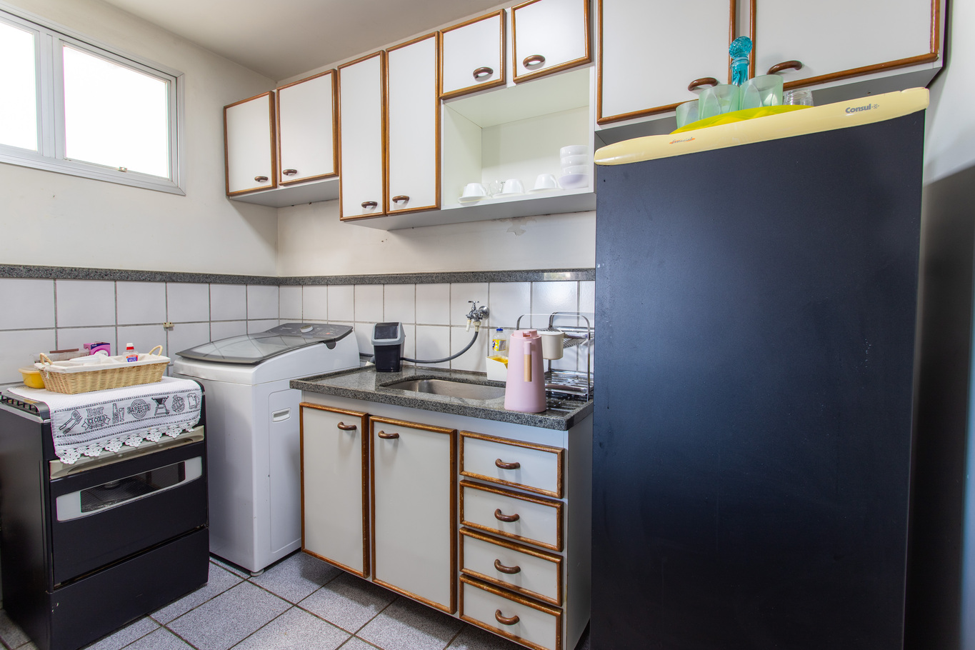 - Cozinha completa com fogão, forno, geladeira, freezer, torradeira, fritadeira, liquidificador utensílios diversos(exceto óleo e sal)