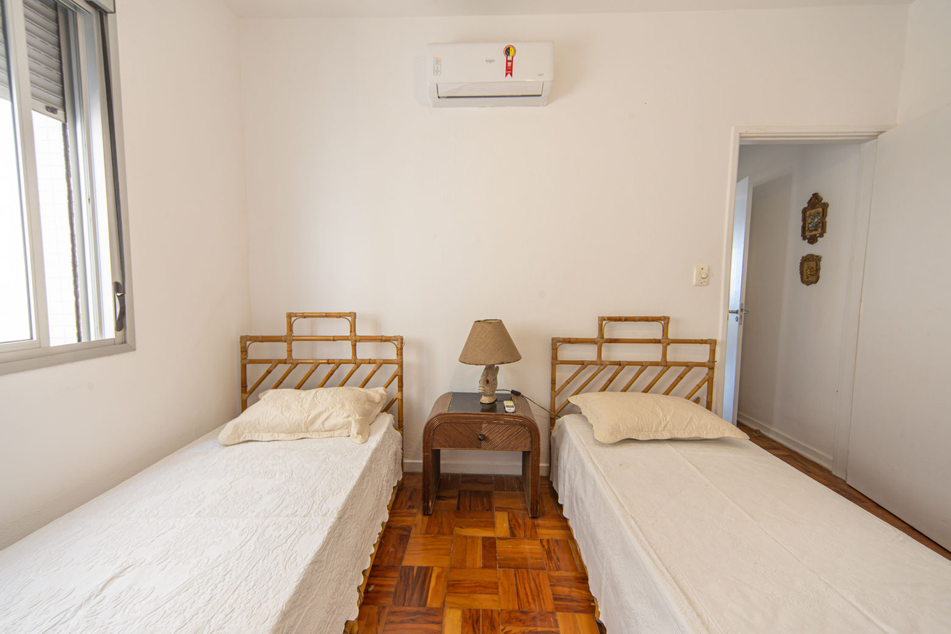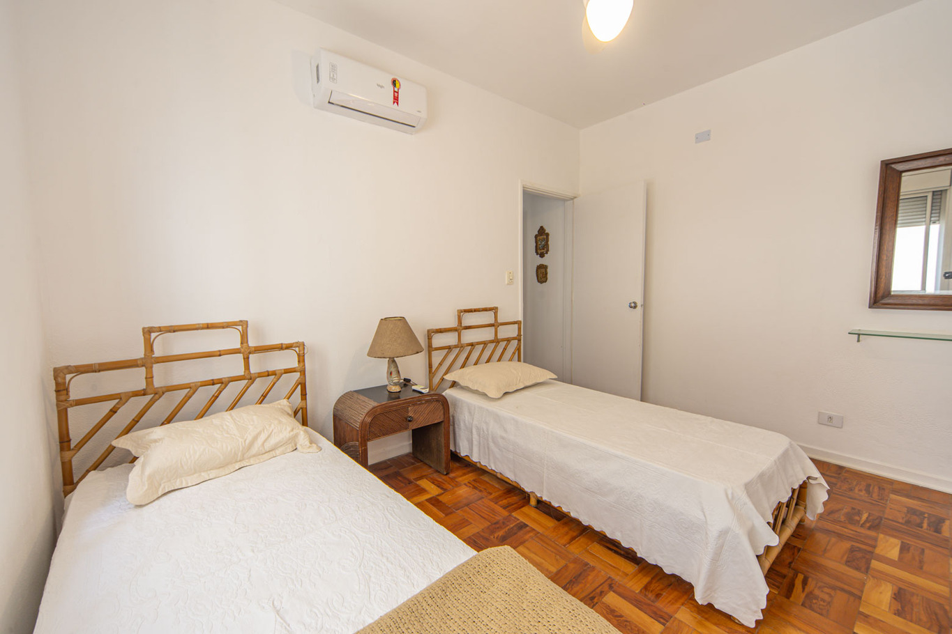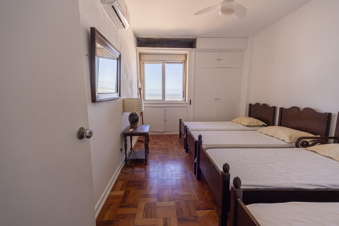 - Quarto 1(suíte): 2 camas de solteiro, ar-condicionado, armário, banheiro privativo com box, chuveiro de aquecimento central e secador de cabelo; e vista privilegiada para o mar