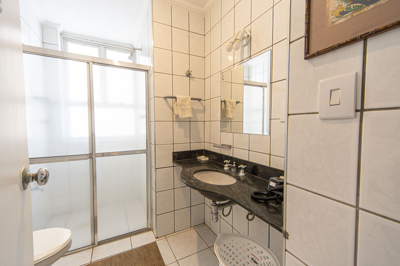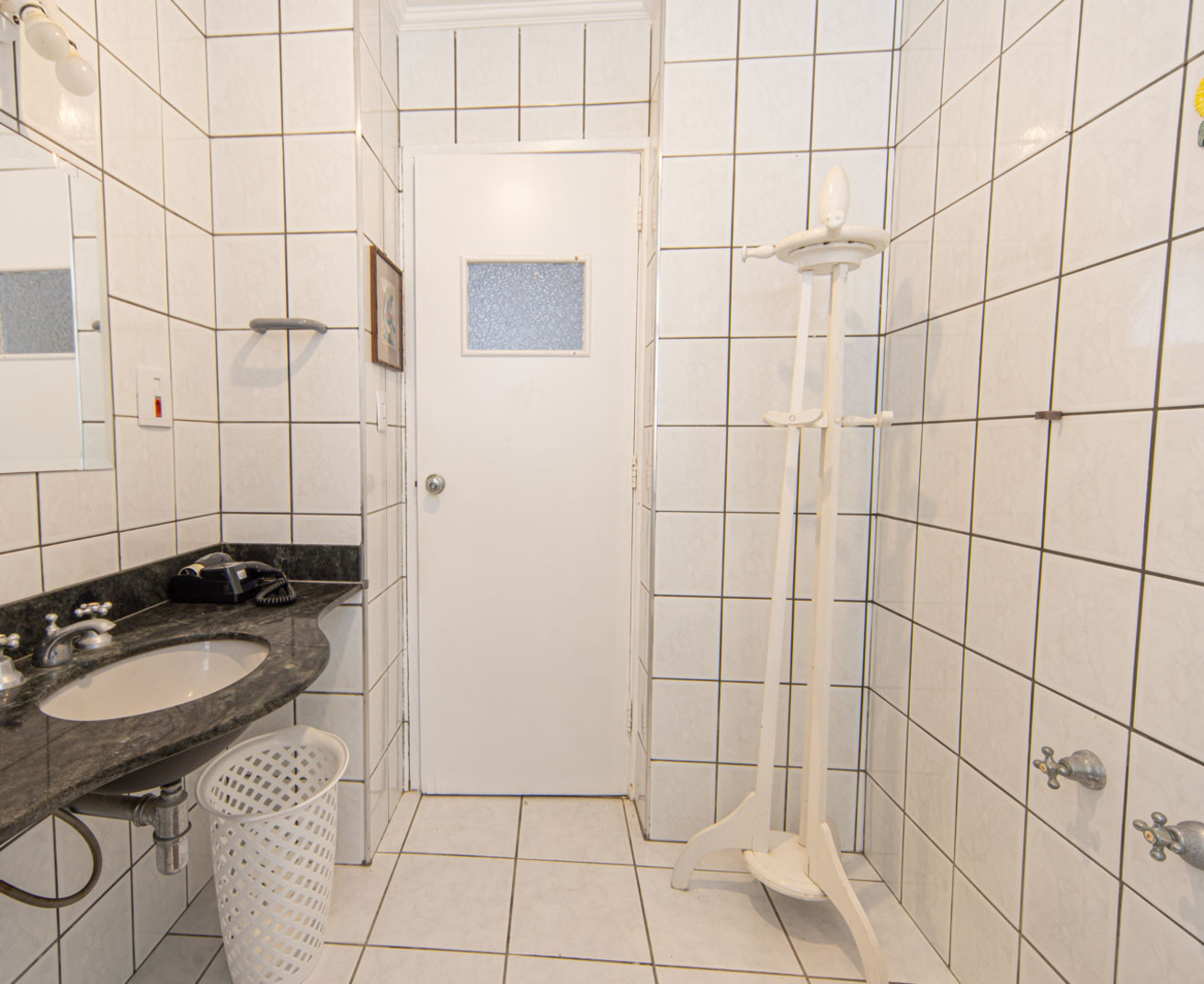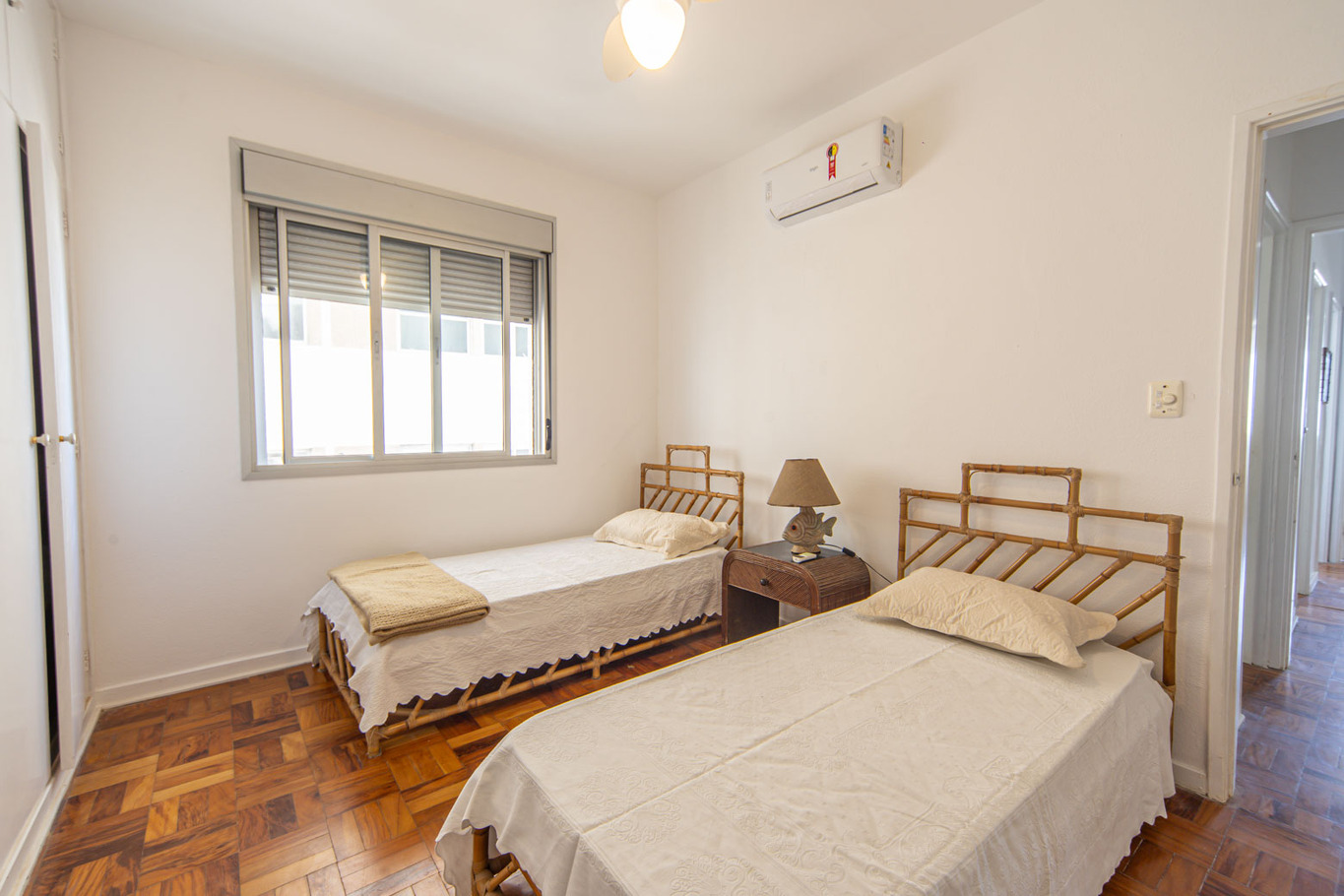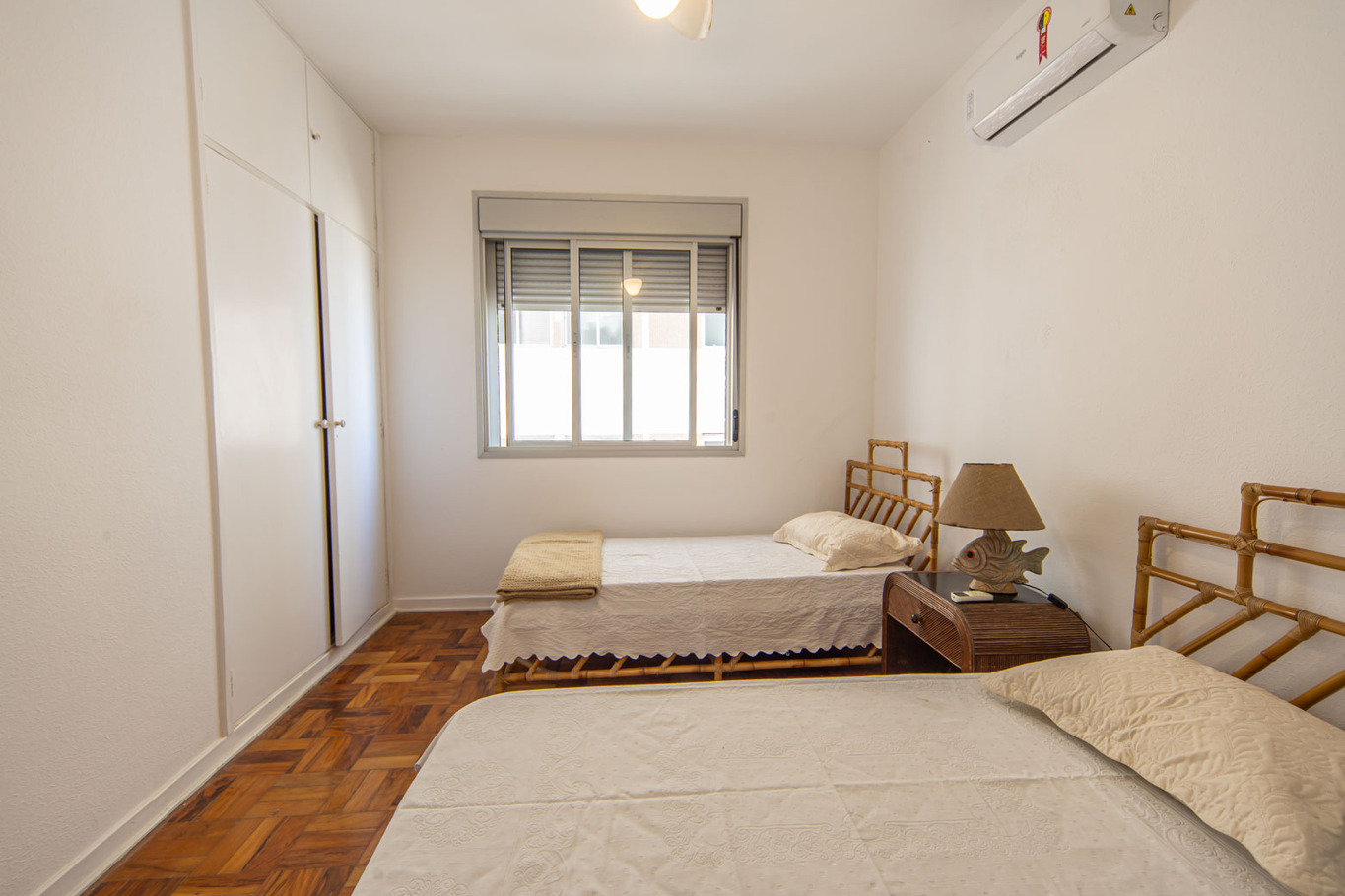 - Quarto 1(suíte): 2 camas de solteiro, ar-condicionado, armário, banheiro privativo com box, chuveiro de aquecimento central e secador de cabelo; e vista privilegiada para o mar