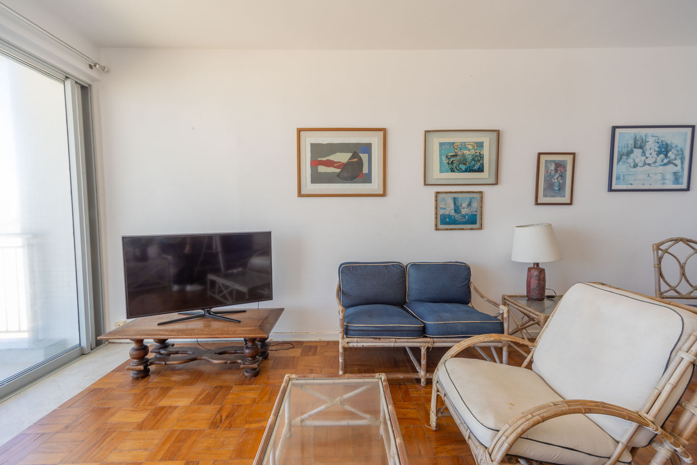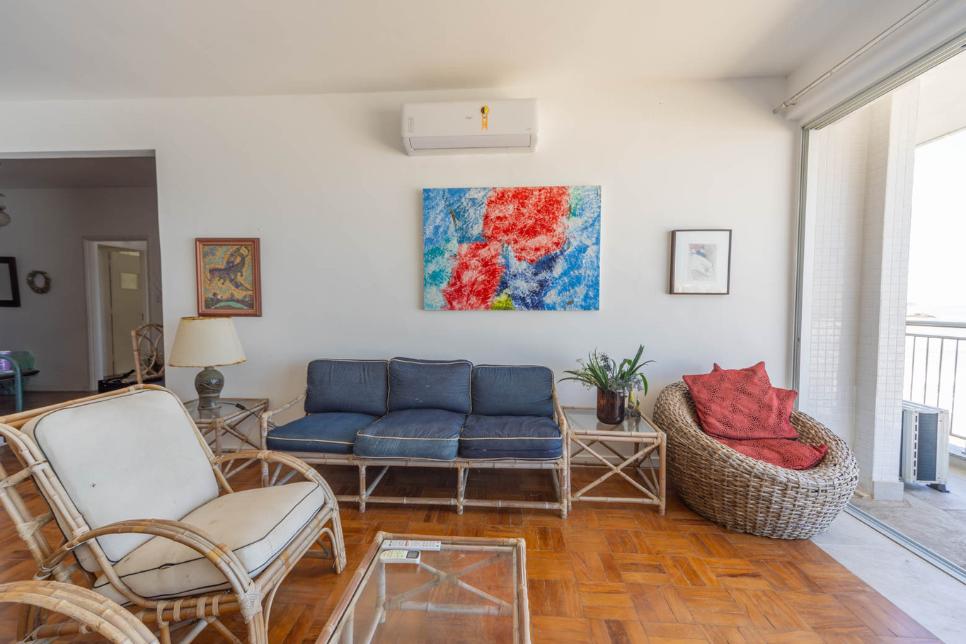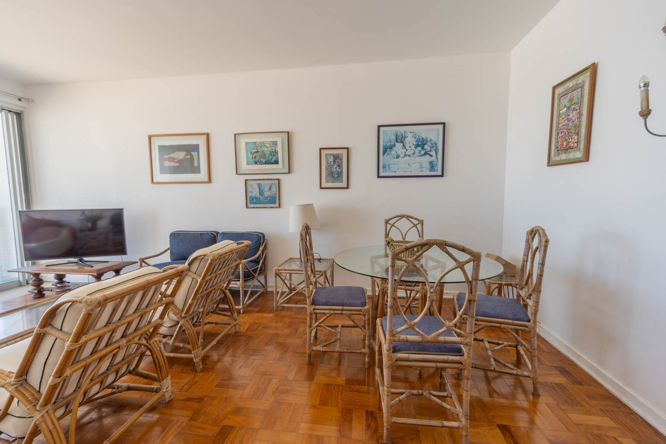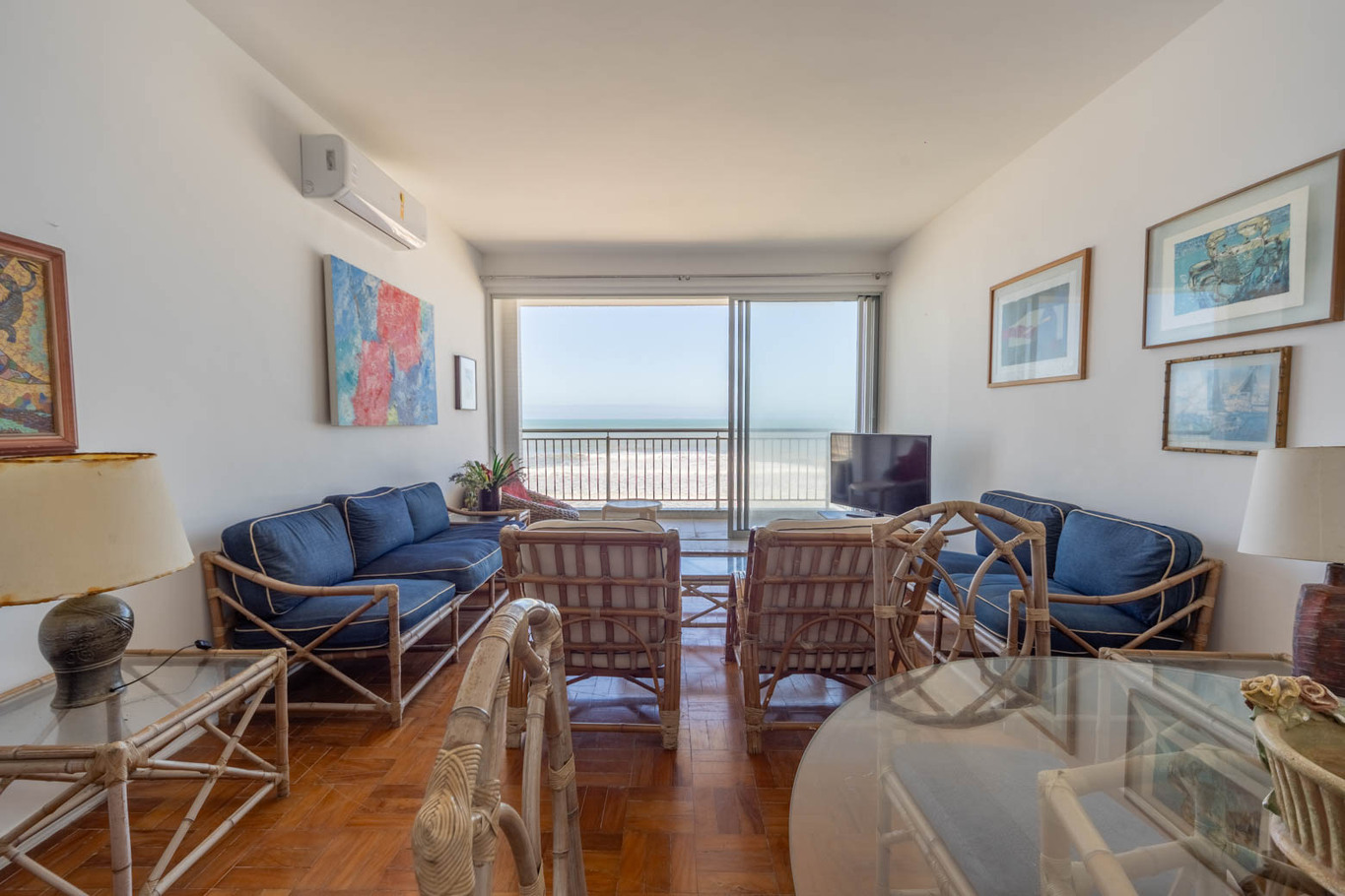 - Sala climatizada com sofá, mesa de jantar, poltronas e smart TV. A varanda é o destaque: um convite para relaxar diante do mar