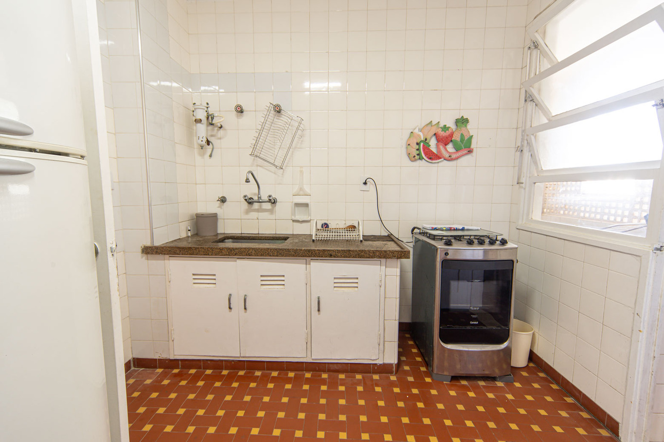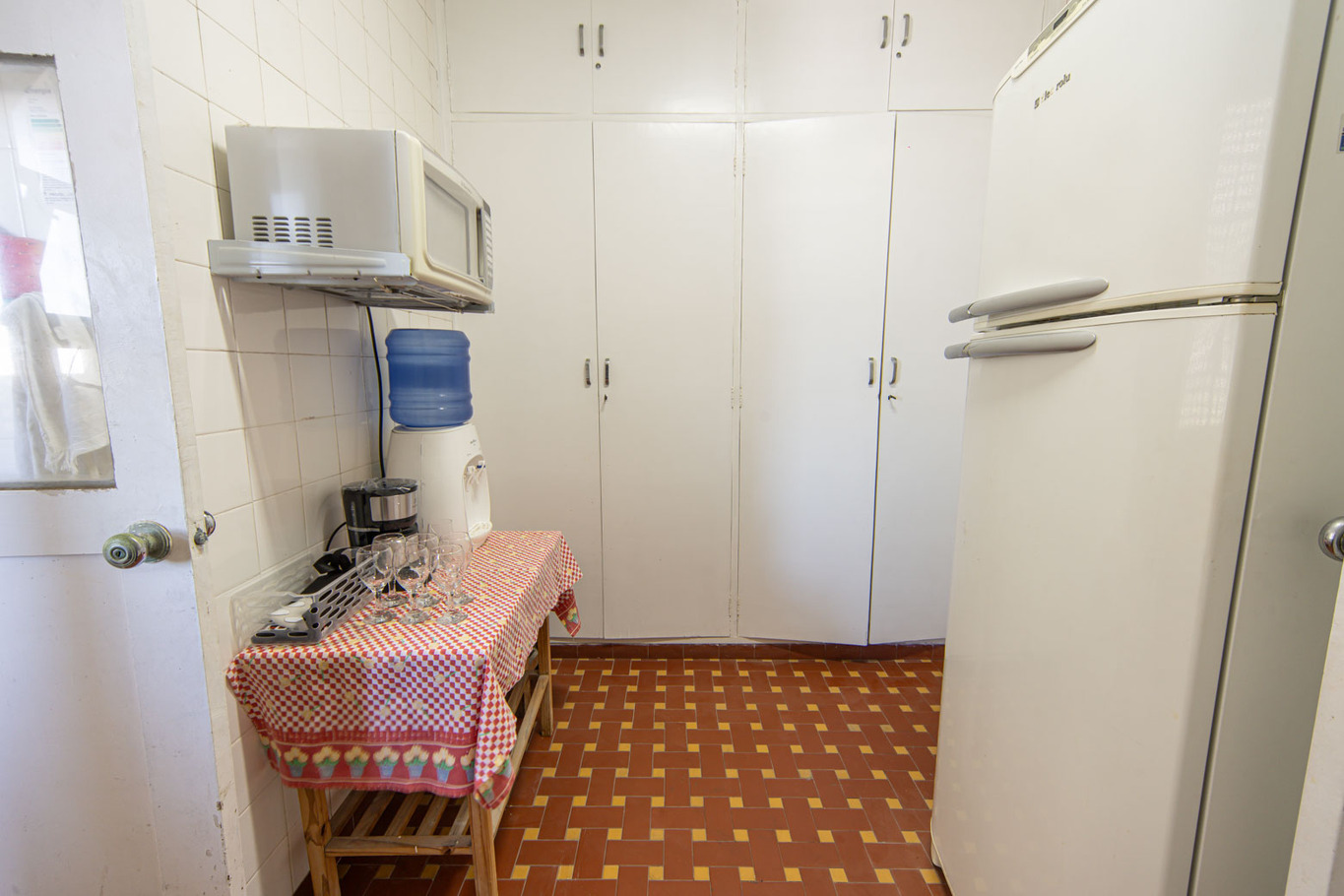 - Cozinha equipada com geladeira, fogão, forno, micro-ondas, cafeteira, bebedouro de água normal e gelada, panelas, travessas, espremedor de frutas e utensílios variados para preparar refeições em família(exceto óleo e sal)