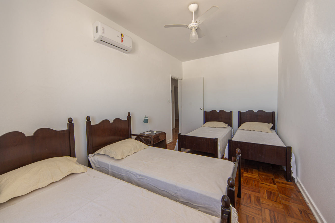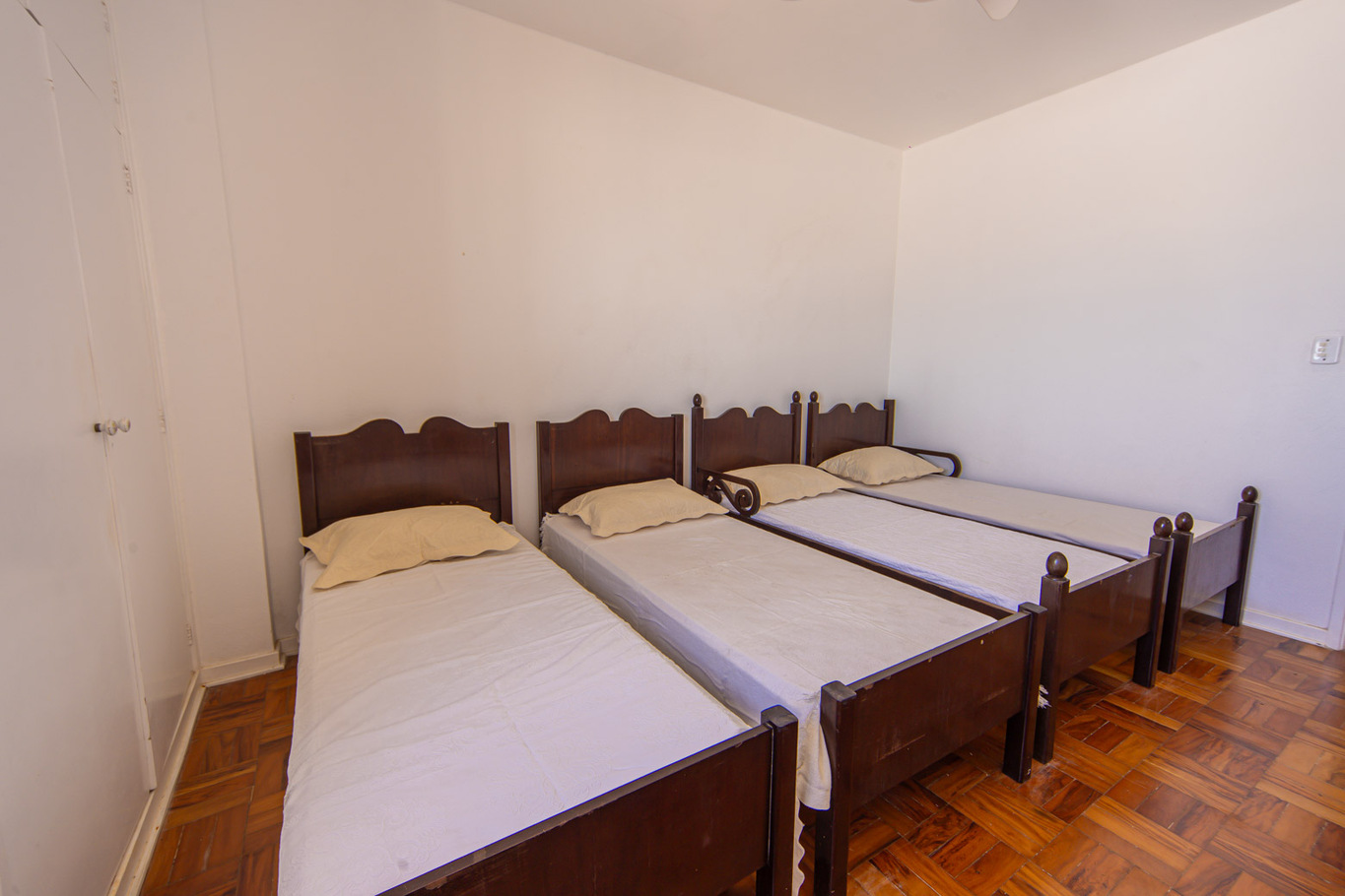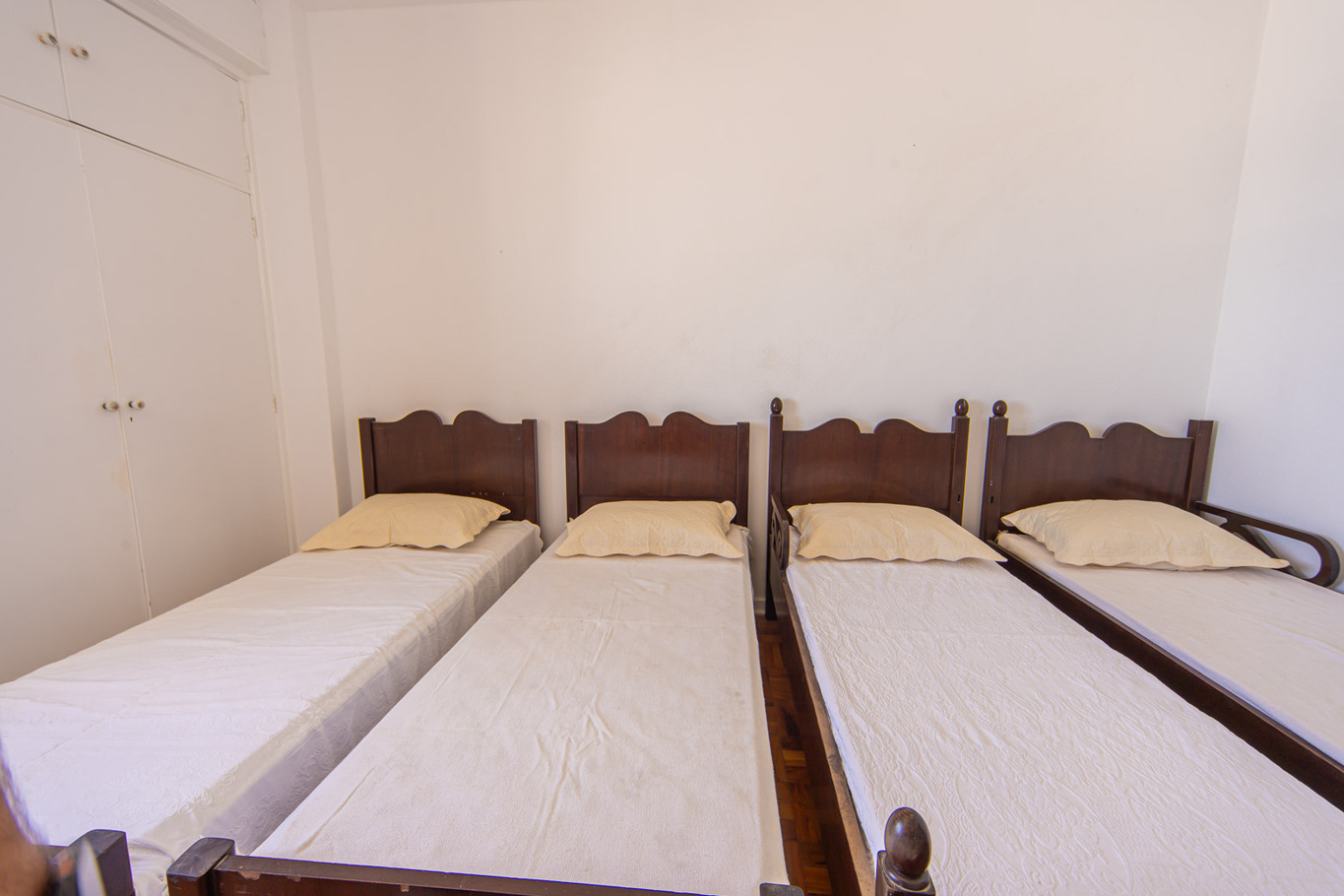 - Quarto 3: 4 camas de solteiro, ar-condicionado e armário