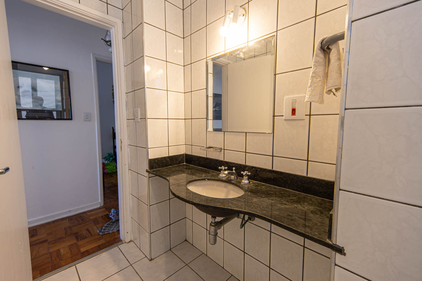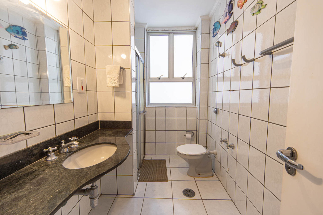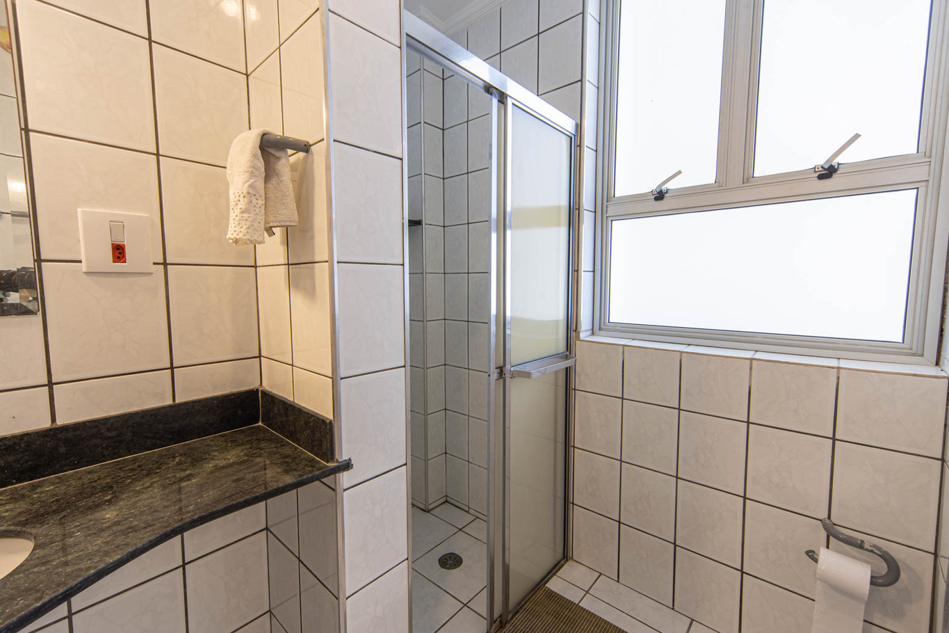 - Banheiro social com box de vidro e chuveiro de aquecimento central