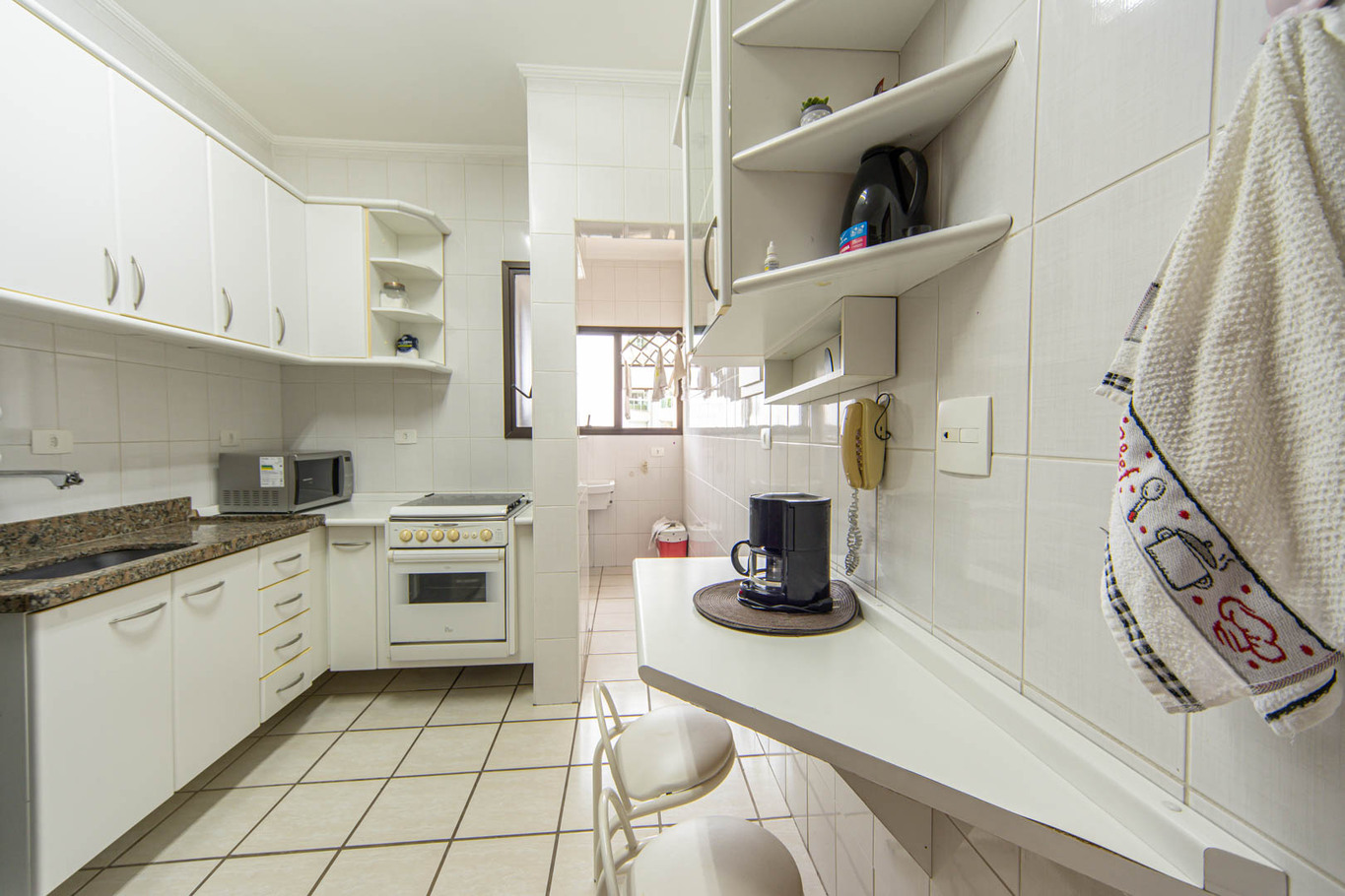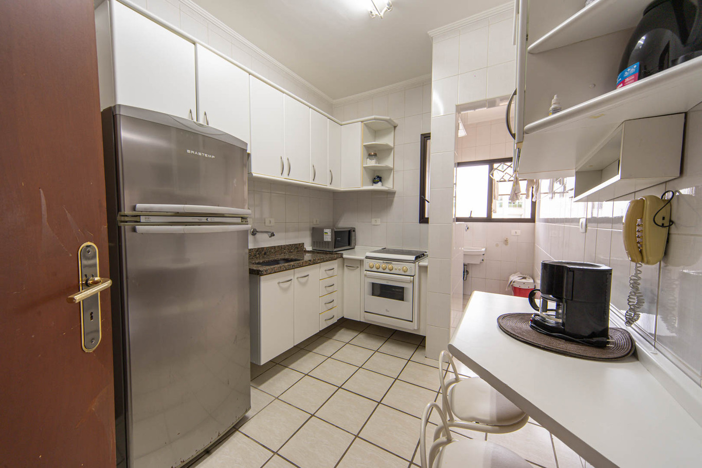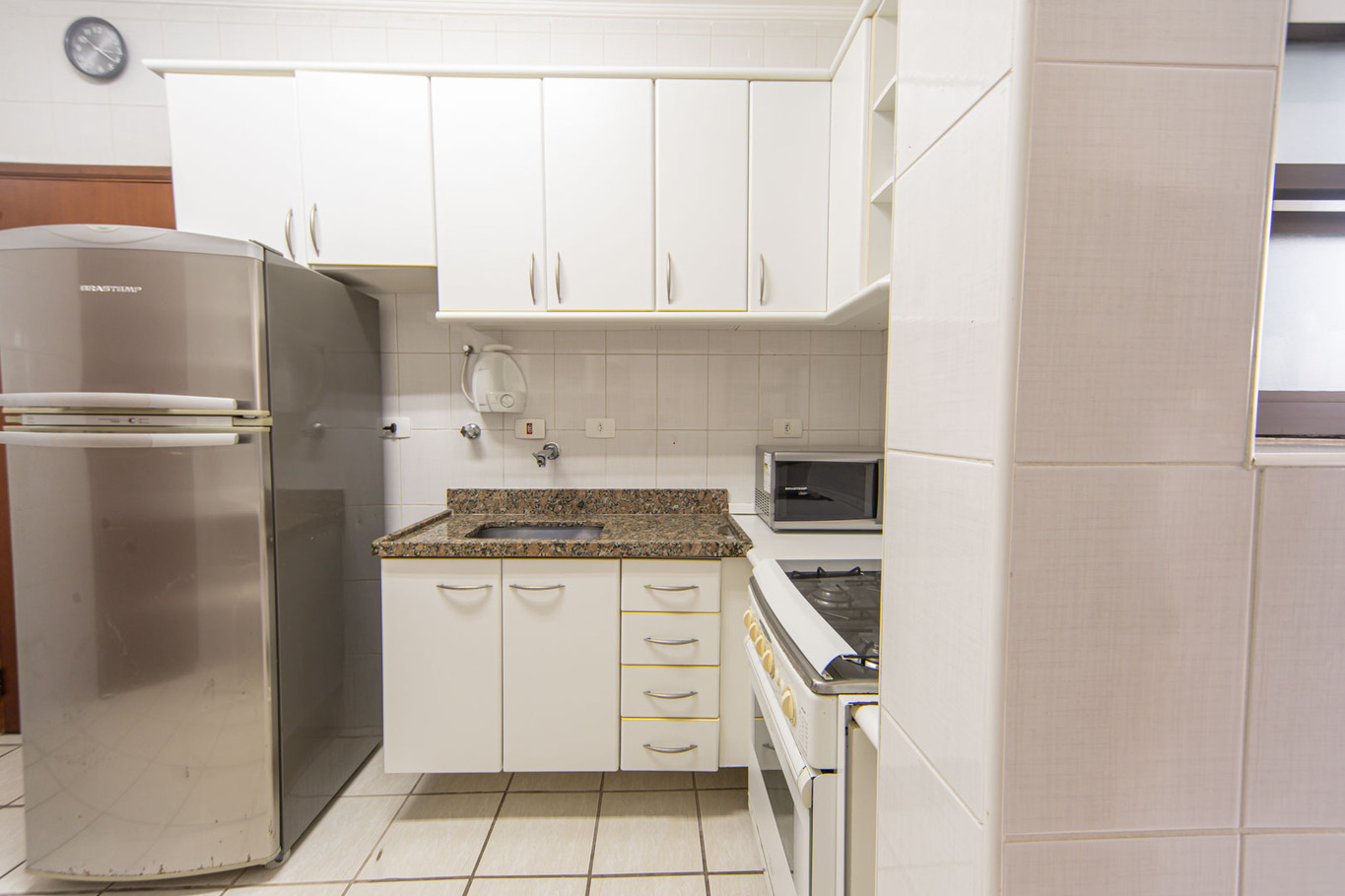- Cozinha completa com fogão, purificador de água, geladeira, micro-ondas e cafeteira(exceto óleo e sal)