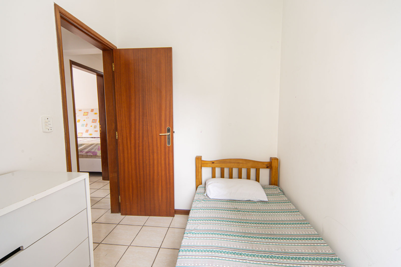 - Quarto 3: cama de solteiro e ventilador de teto