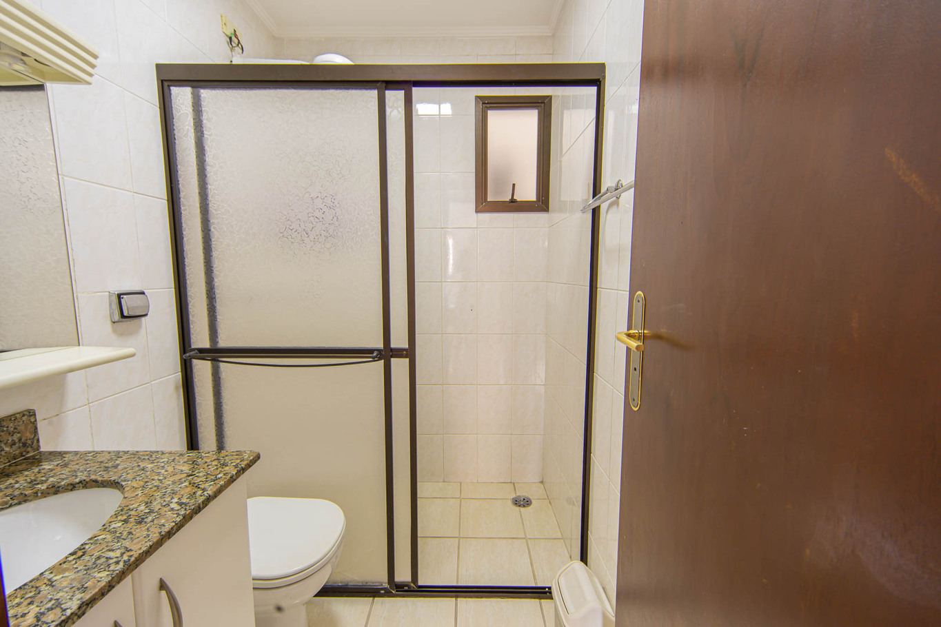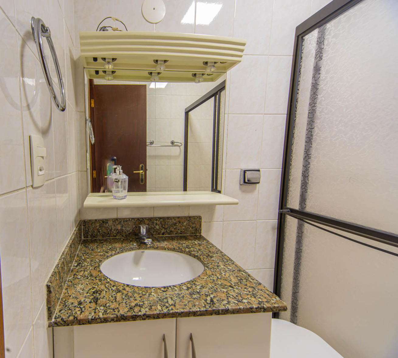 - Quarto 1(Suíte): cama de casal, ar-condicionado, smart TV e banheiro com box e chuveiro elétrico