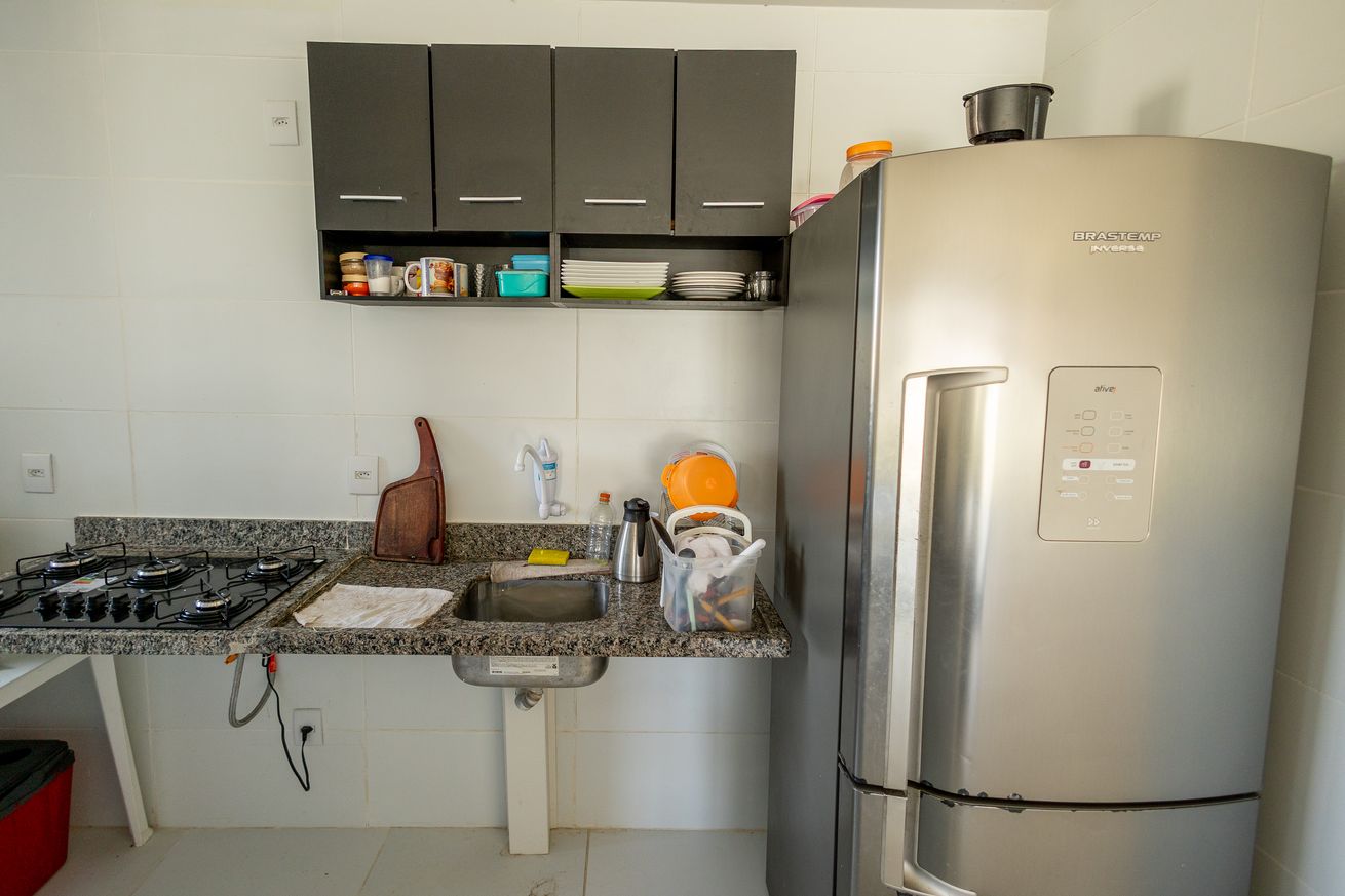 - Cozinha equipada com fogão cooktop, geladeira, micro-ondas, cafeteira, fritadeira, filtro na torneira, mesa com 4 cadeiras e utensílios completos (exceto óleo e sal)