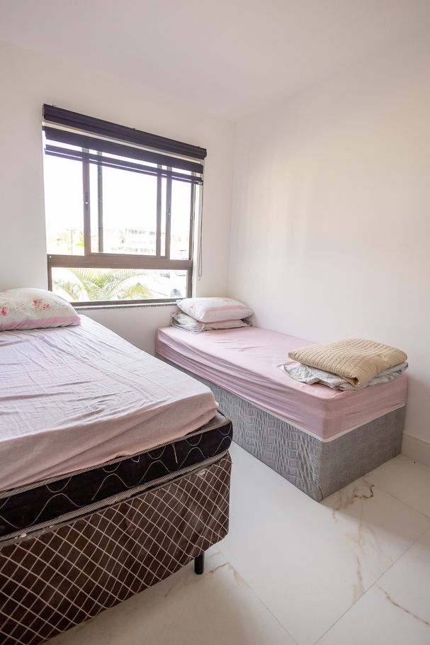 - Quarto 2: 2 camas de solteiro, ar-condicionado e armário tipo arara