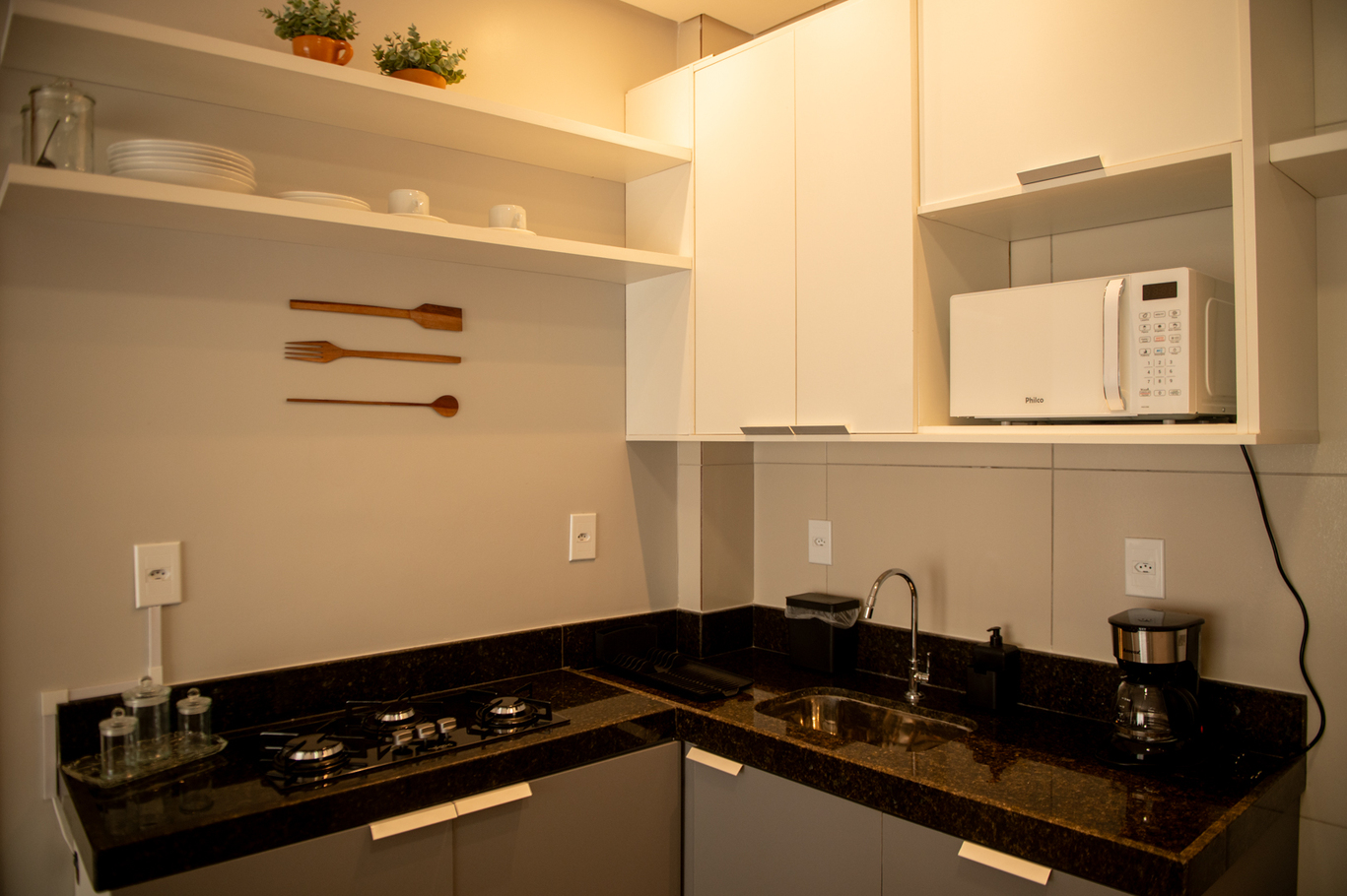 - Cozinha equipada: geladeira, fogão, forno, microondas, cafeteira e utensílios completos(exceto óleo e sal)