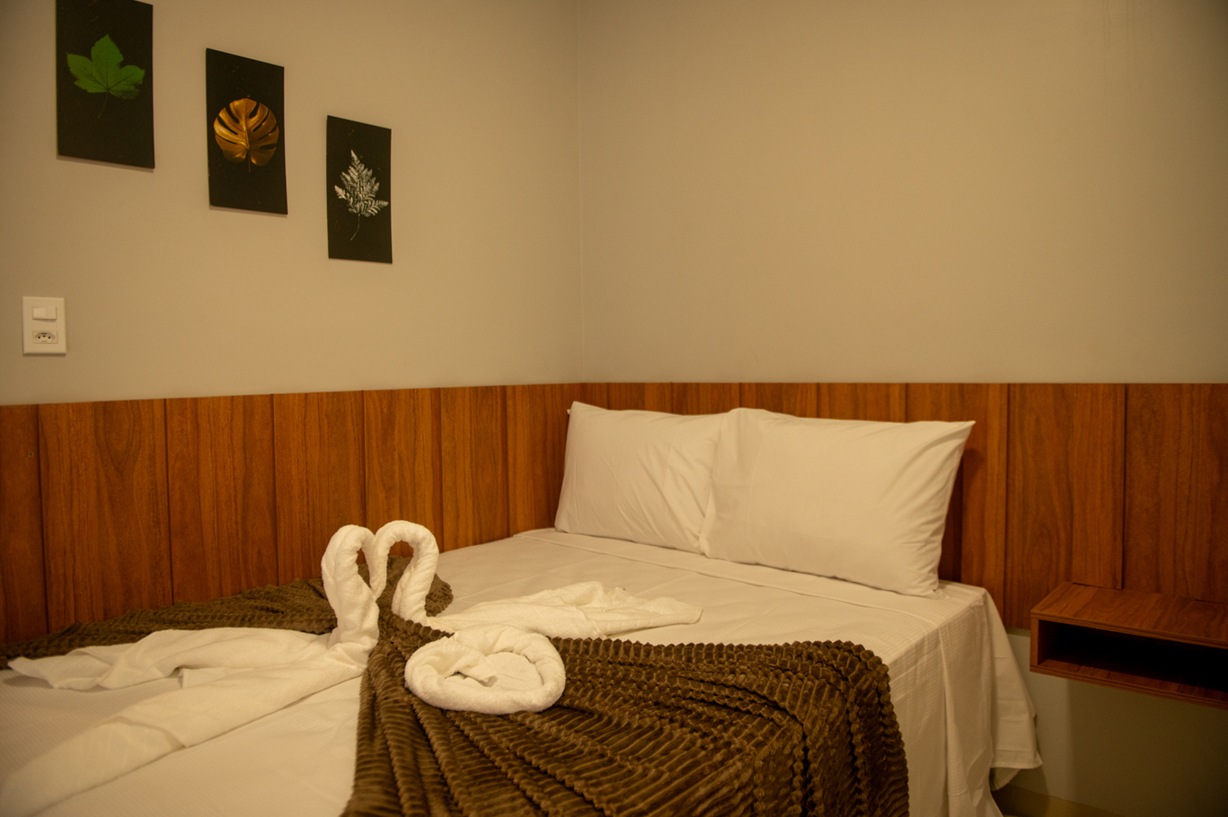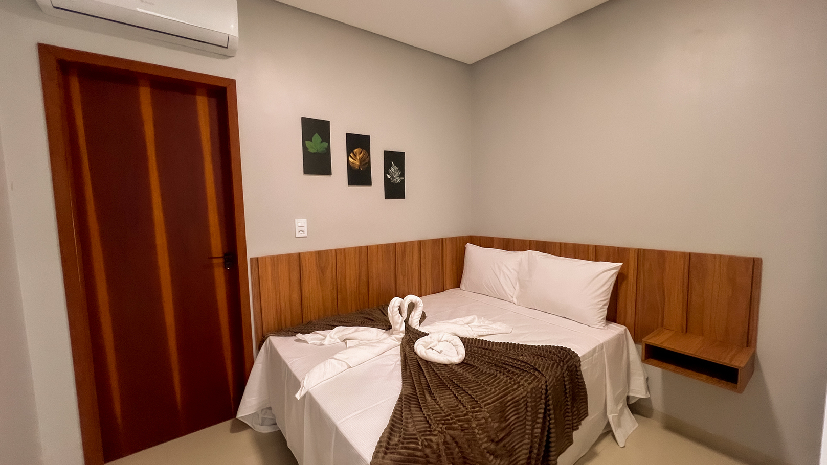 - Quarto 1(suíte): cama de casal, ar-condicionado e banheiro privativo com box de vidro