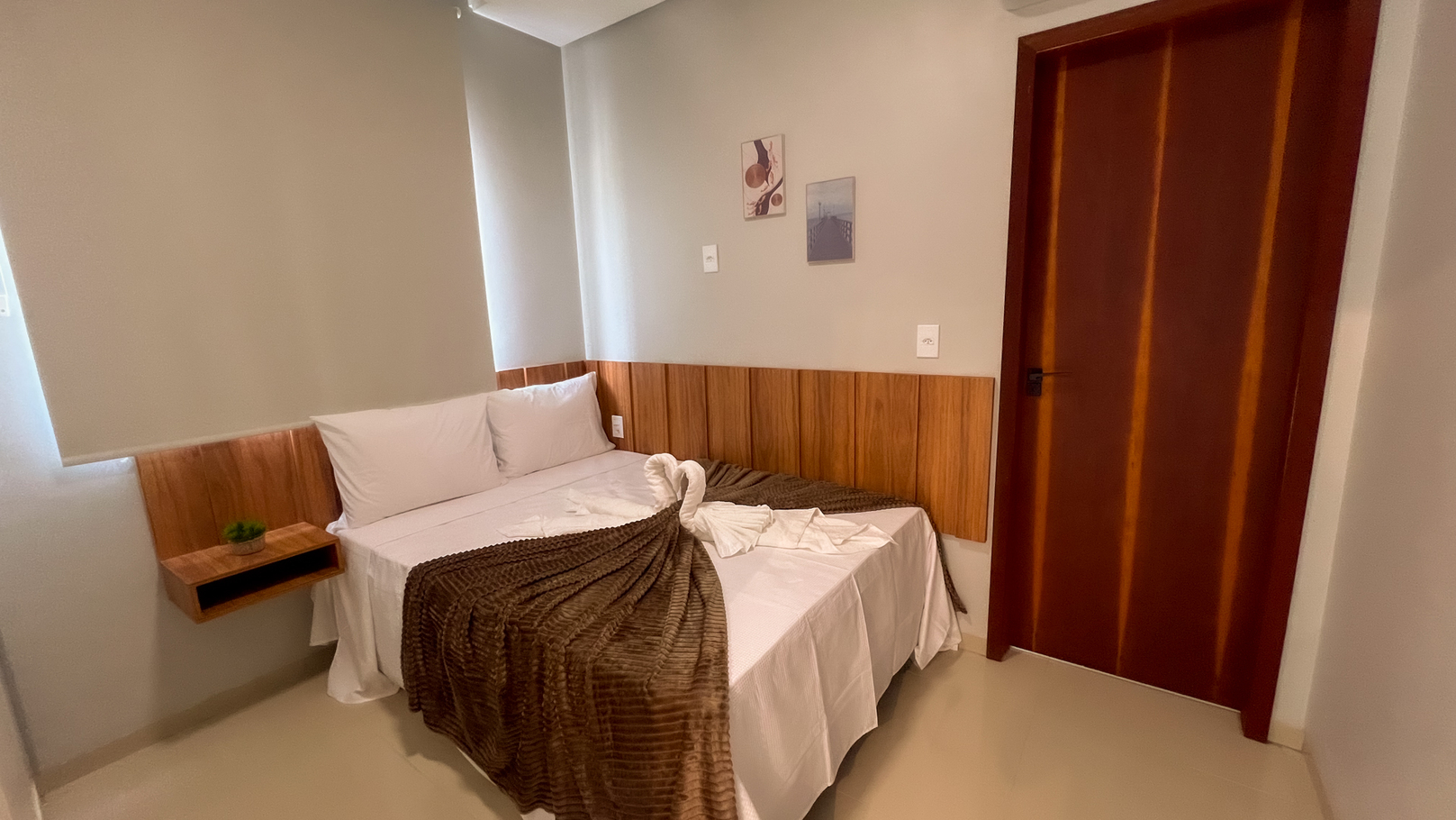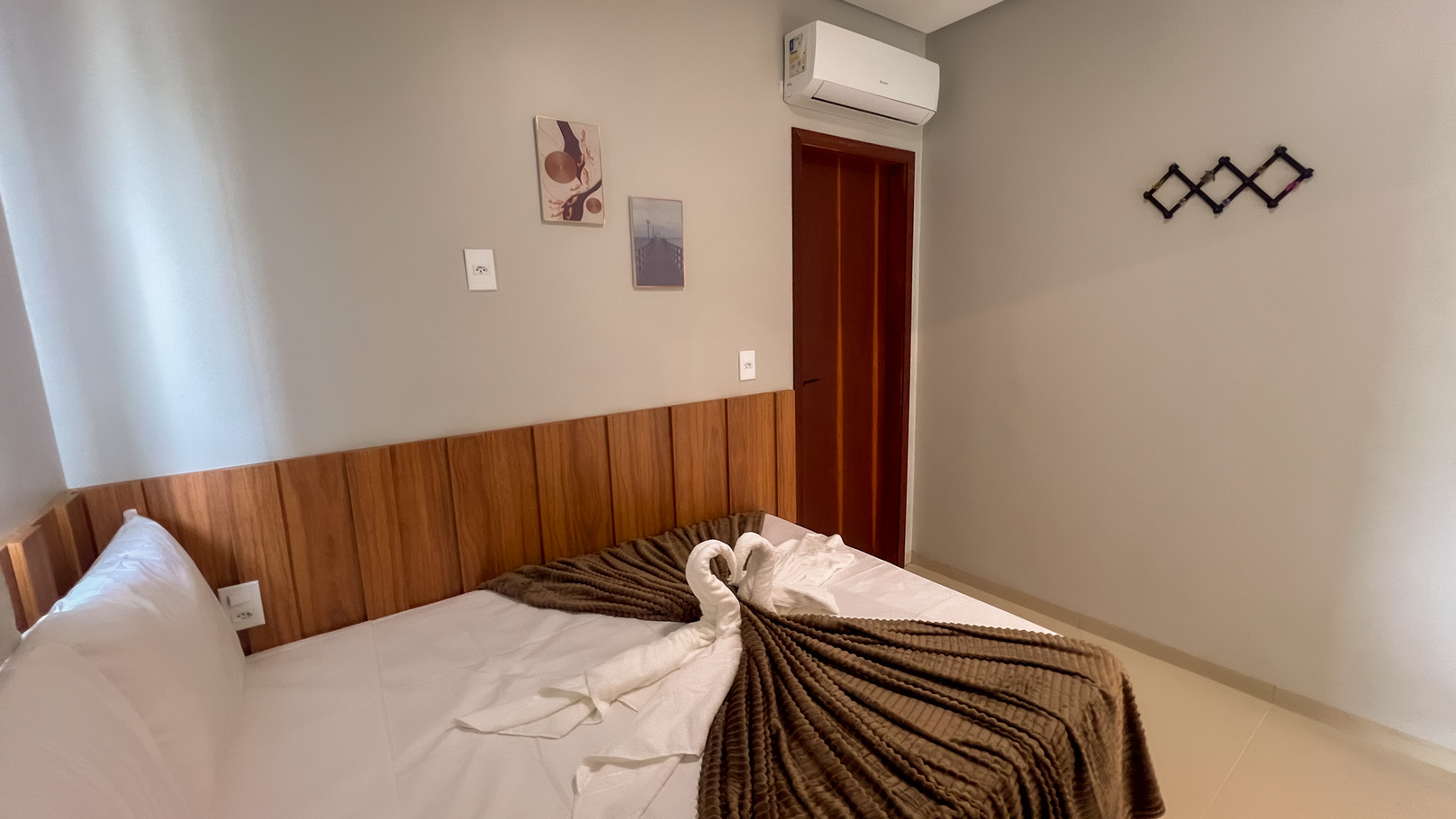 - Quarto 2(suíte): cama de casal, ar-condicionado e banheiro privativo com box de vidro