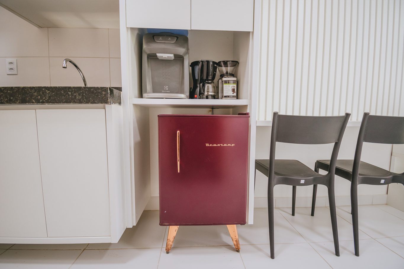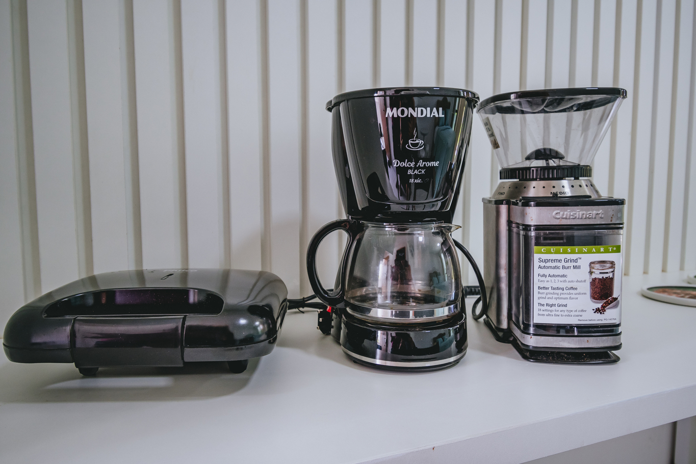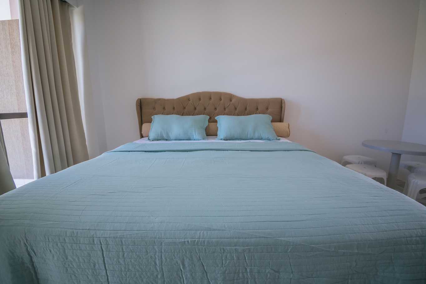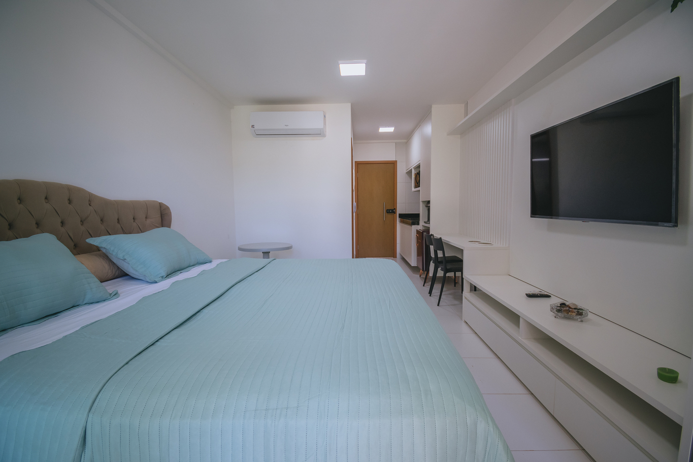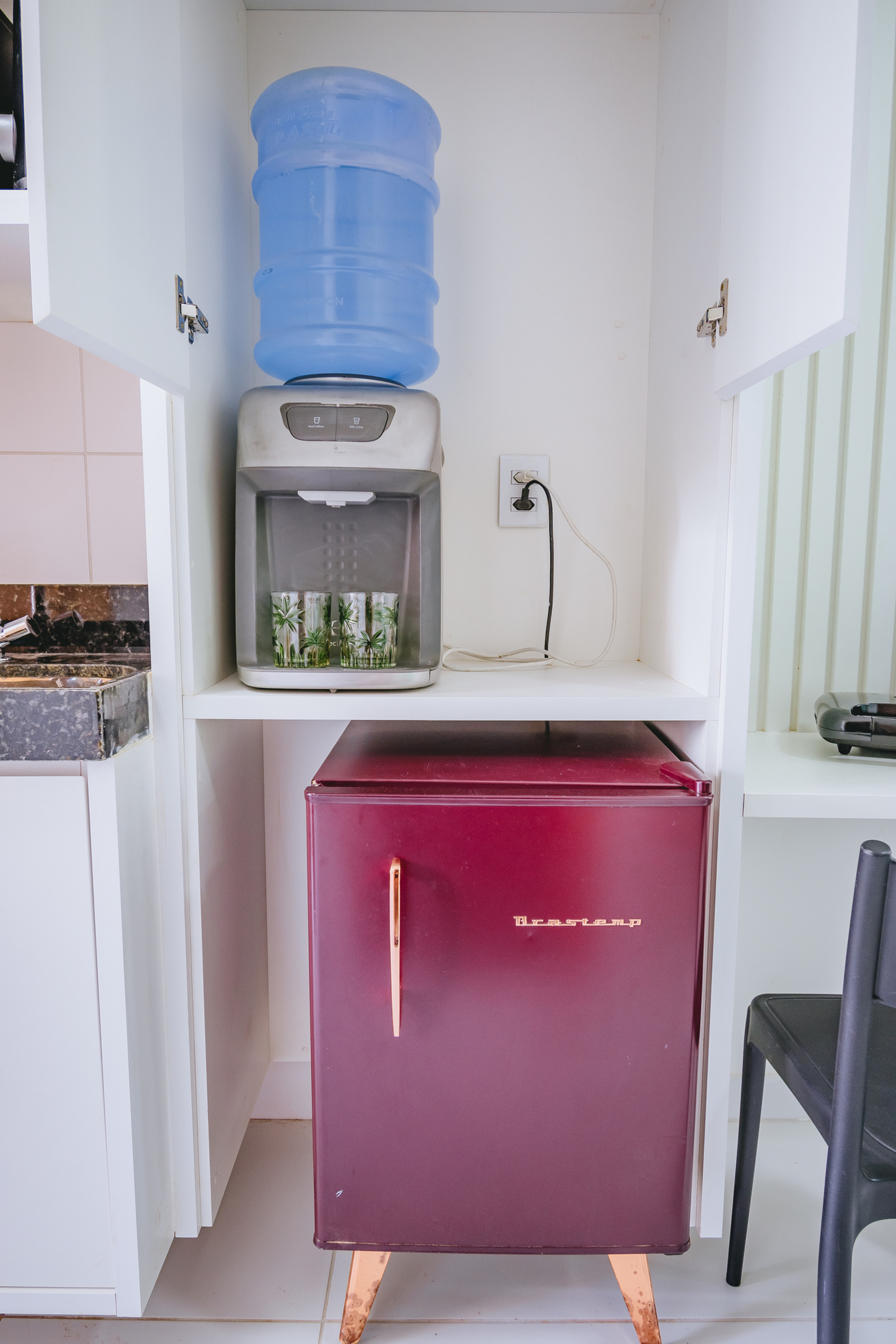 - Cozinha equipada com fogão, micro-ondas, geladeira frigobar, cafeteira, filtro, batedeira, louças e utensílios completos(exceto óleo e sal)