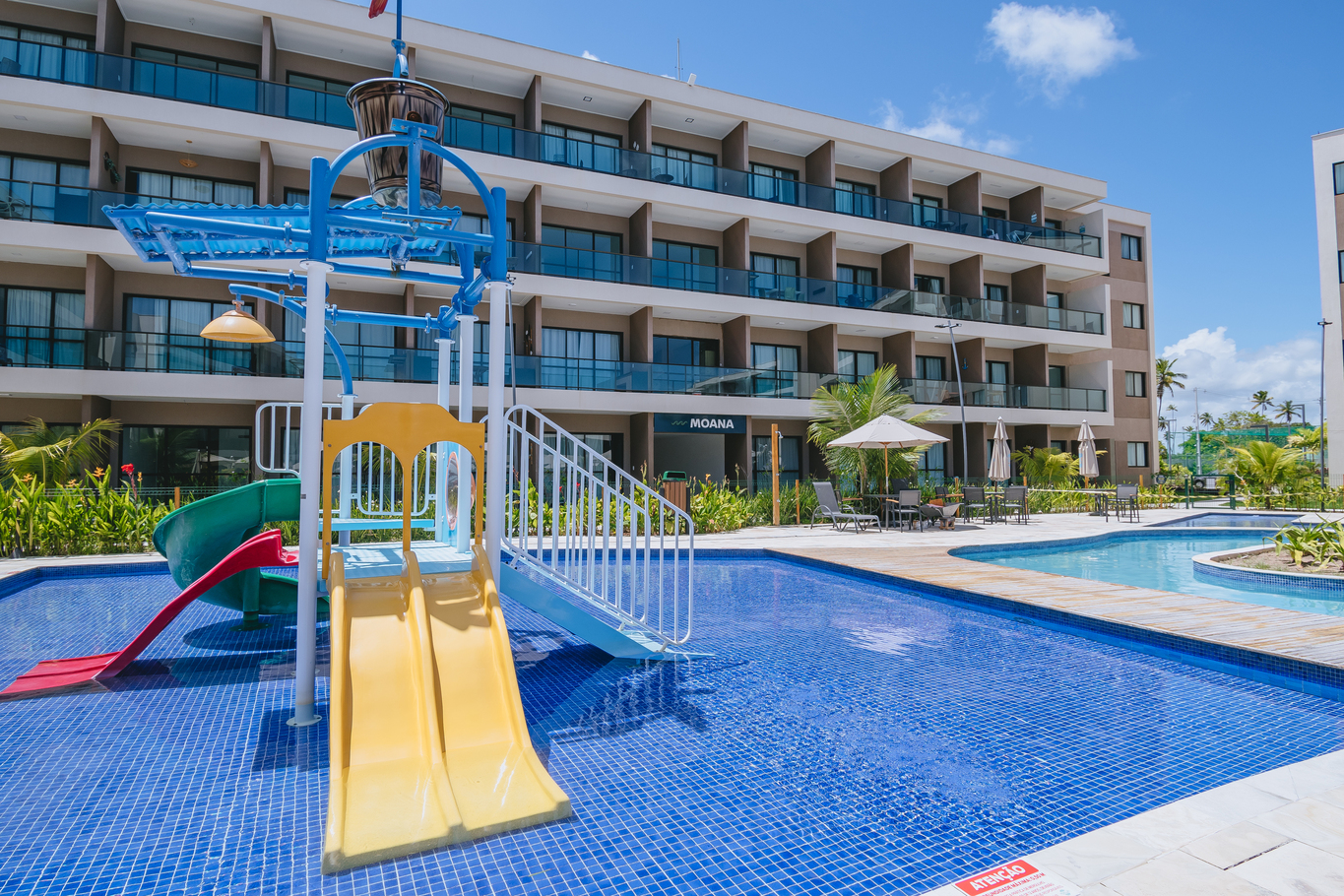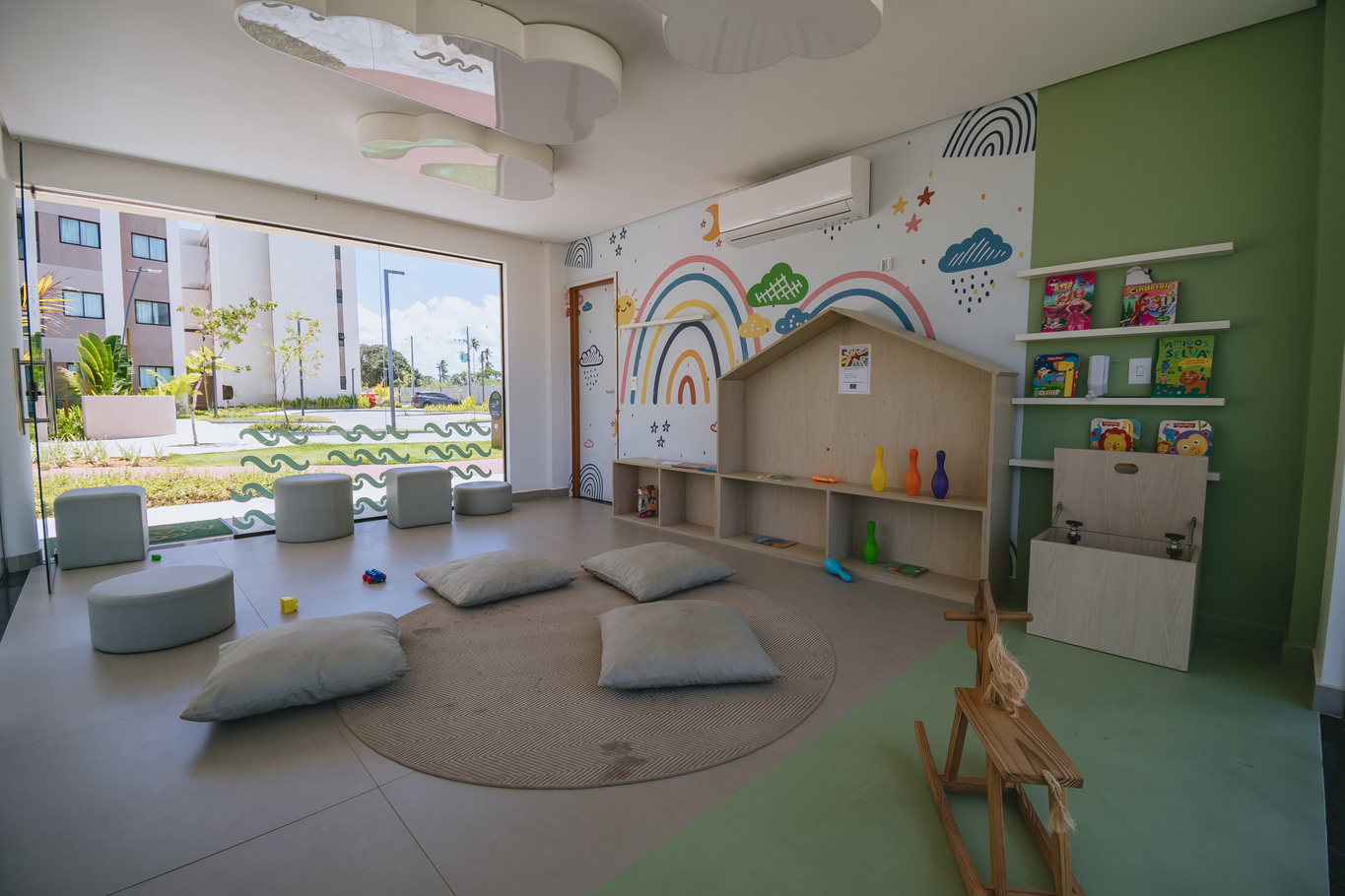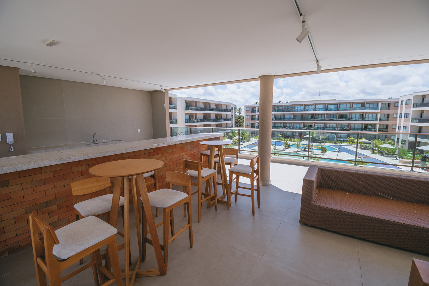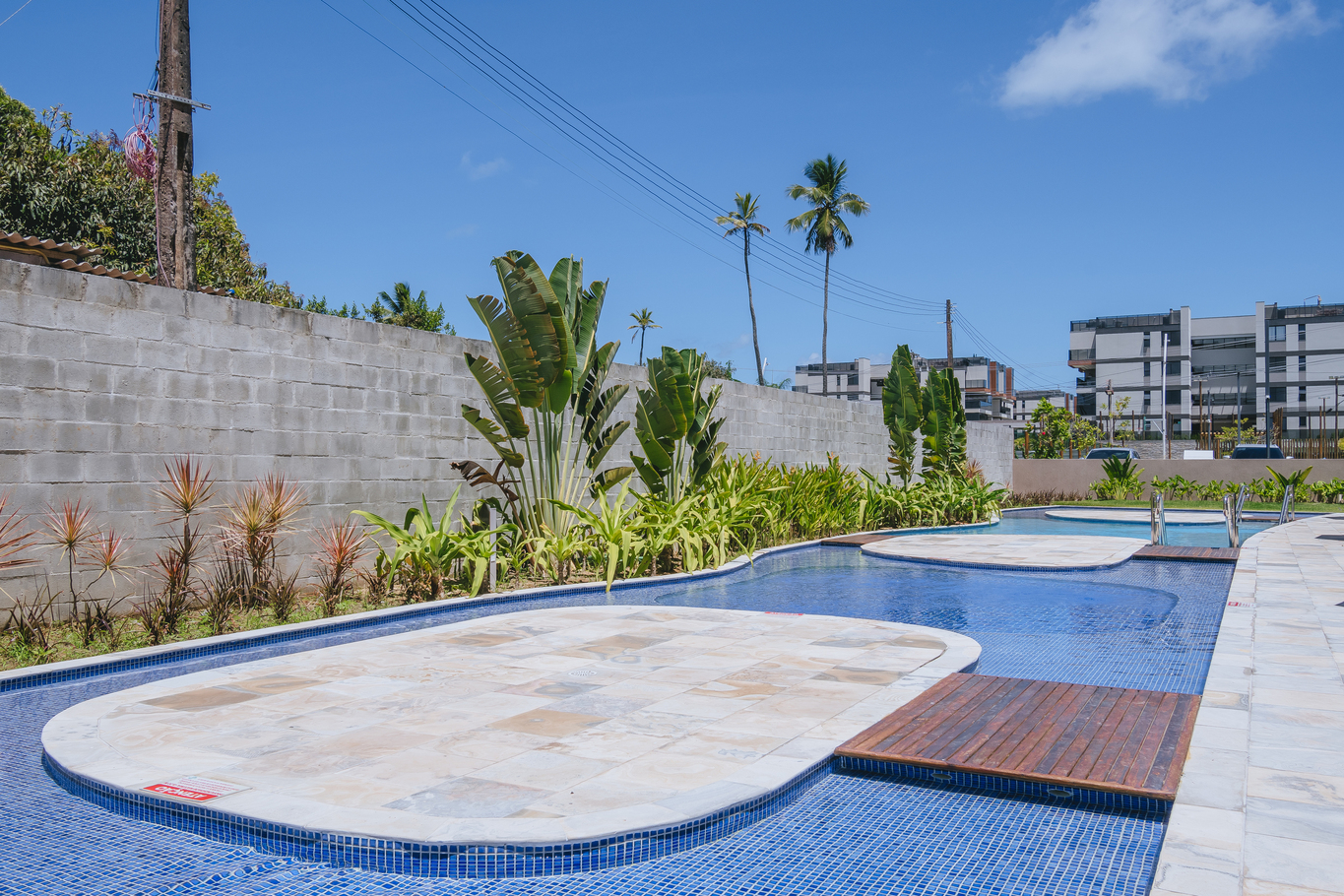 - Comodidades do condomínio: piscinas amplas e áreas de descanso que lembram um parque aquático, brinquedoteca, playground, sala de jogos, academia, churrasqueiras, restaurante interno, mini mercado, ambientes integrados para relaxar e socializar