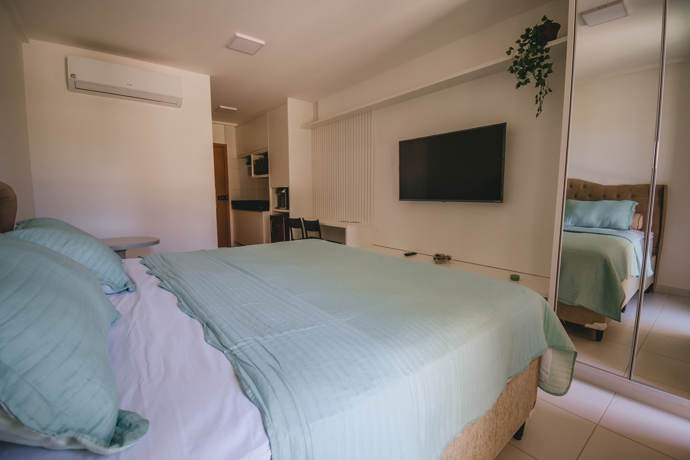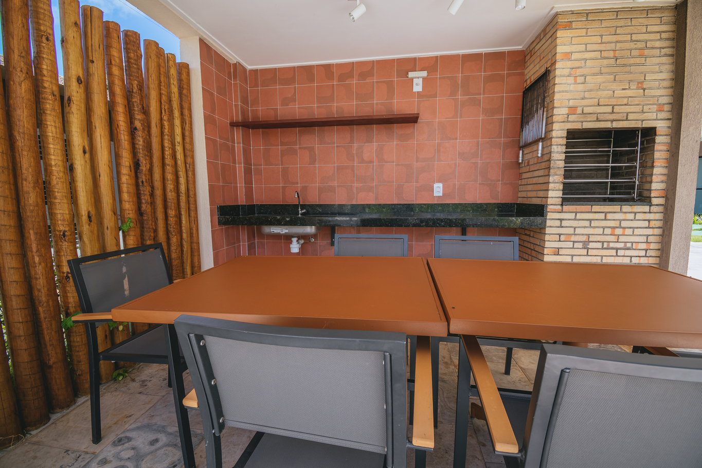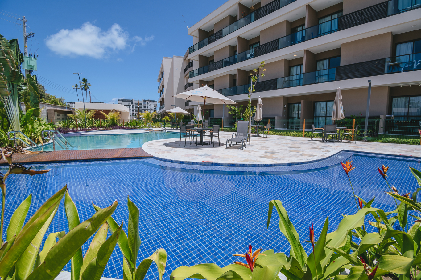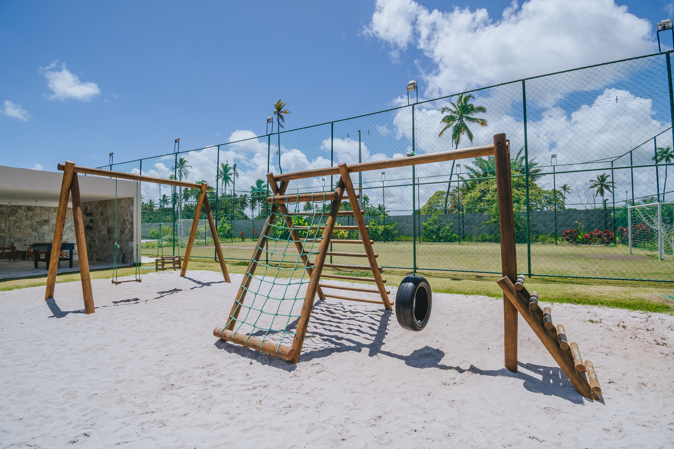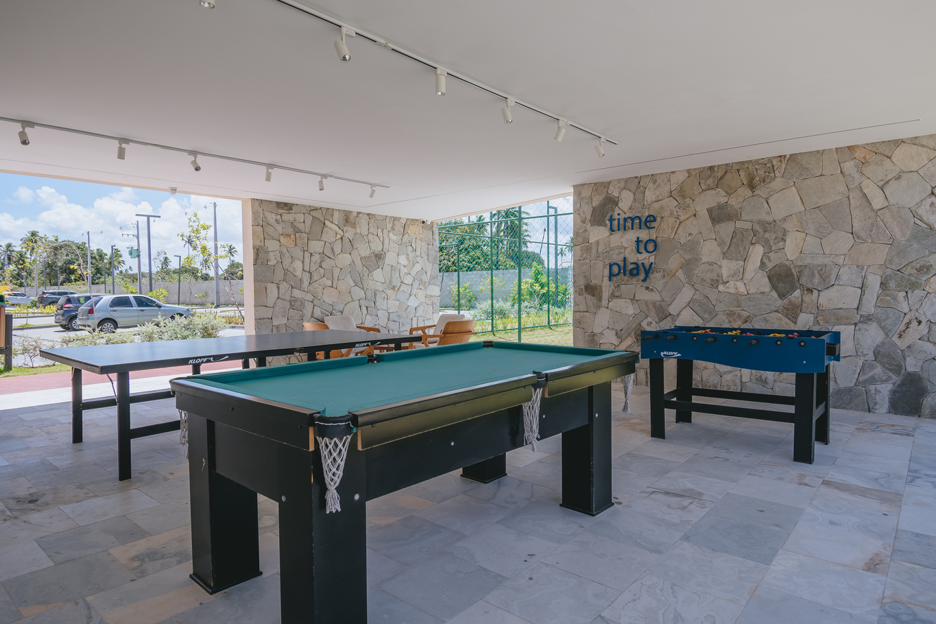 - Comodidades do condomínio: piscinas amplas e áreas de descanso que lembram um parque aquático, brinquedoteca, playground, sala de jogos, academia, churrasqueiras, restaurante interno, mini mercado, ambientes integrados para relaxar e socializar