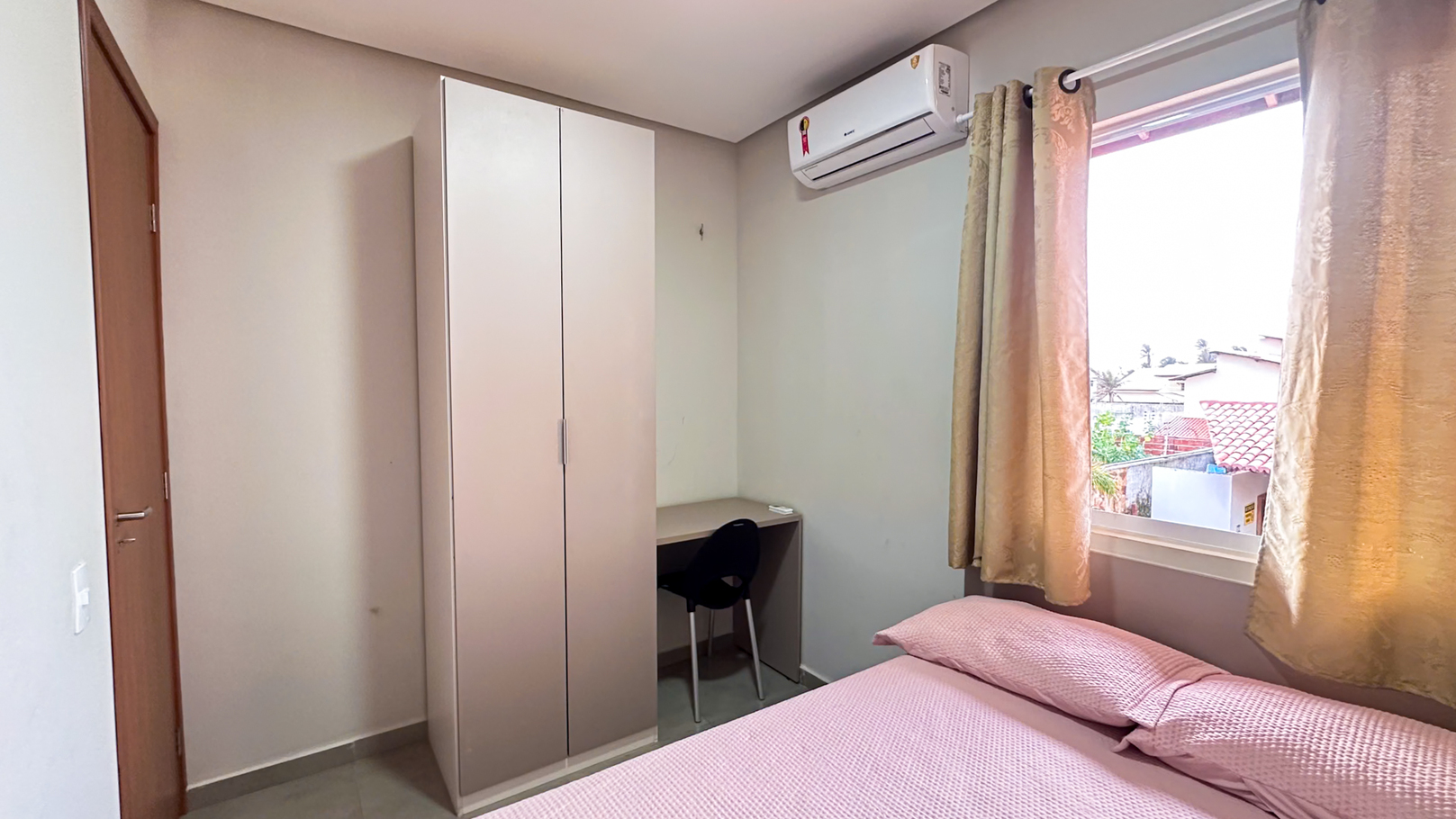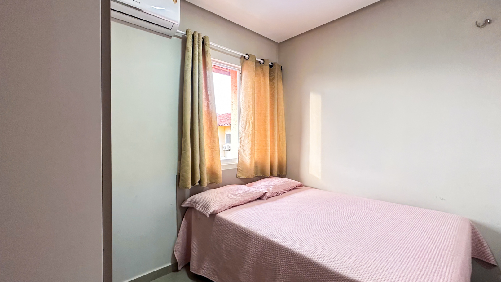 - Quarto 2 com cama de casal, cama de solteiro e ar-condicionado