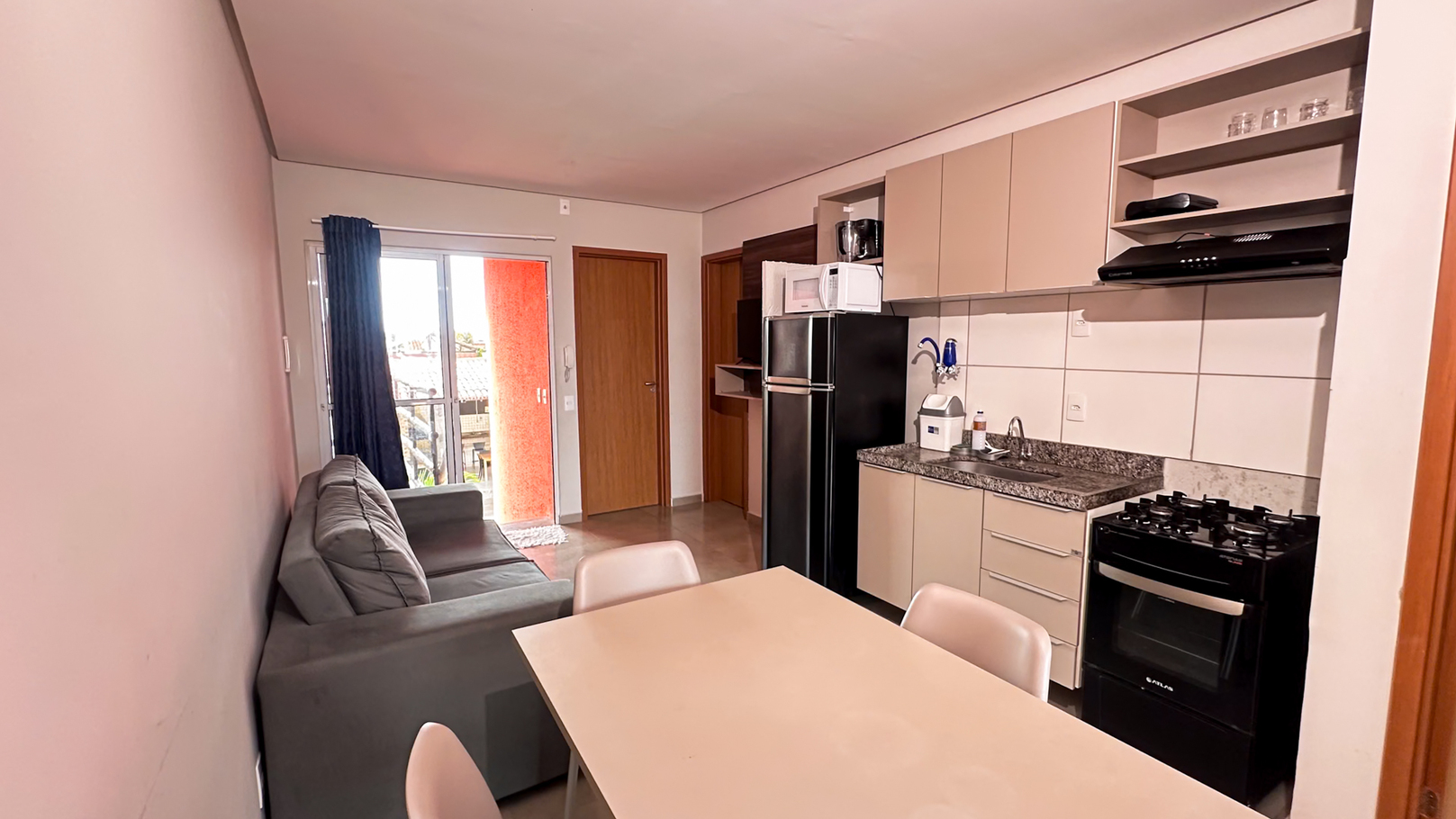 - Cozinha equipada com fogão, geladeira, mesa de apoio e utensílios básicos(exceto óleo e sal)