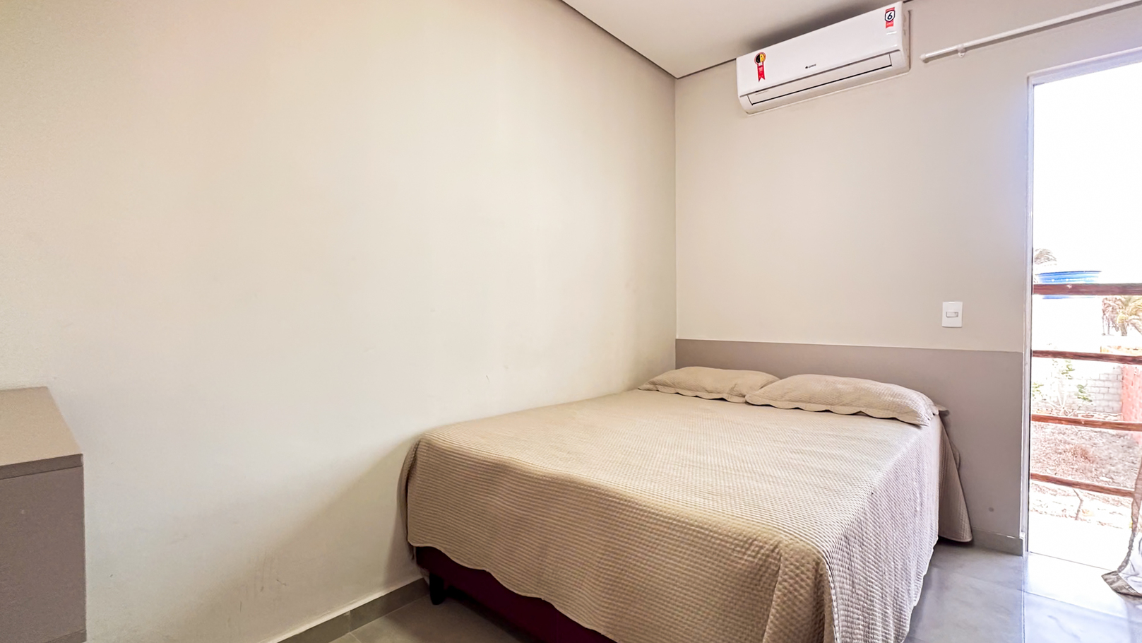 - Quarto 1(Suíte) com cama de casal, ar-condicionado e banheiro com box de vidro