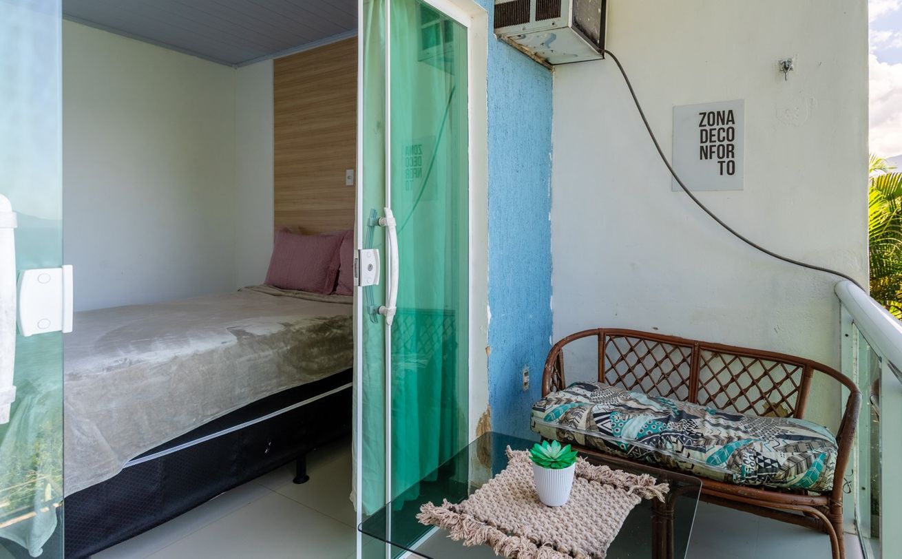 Quarto com sacada, ideal para momentos de descanso e contemplação