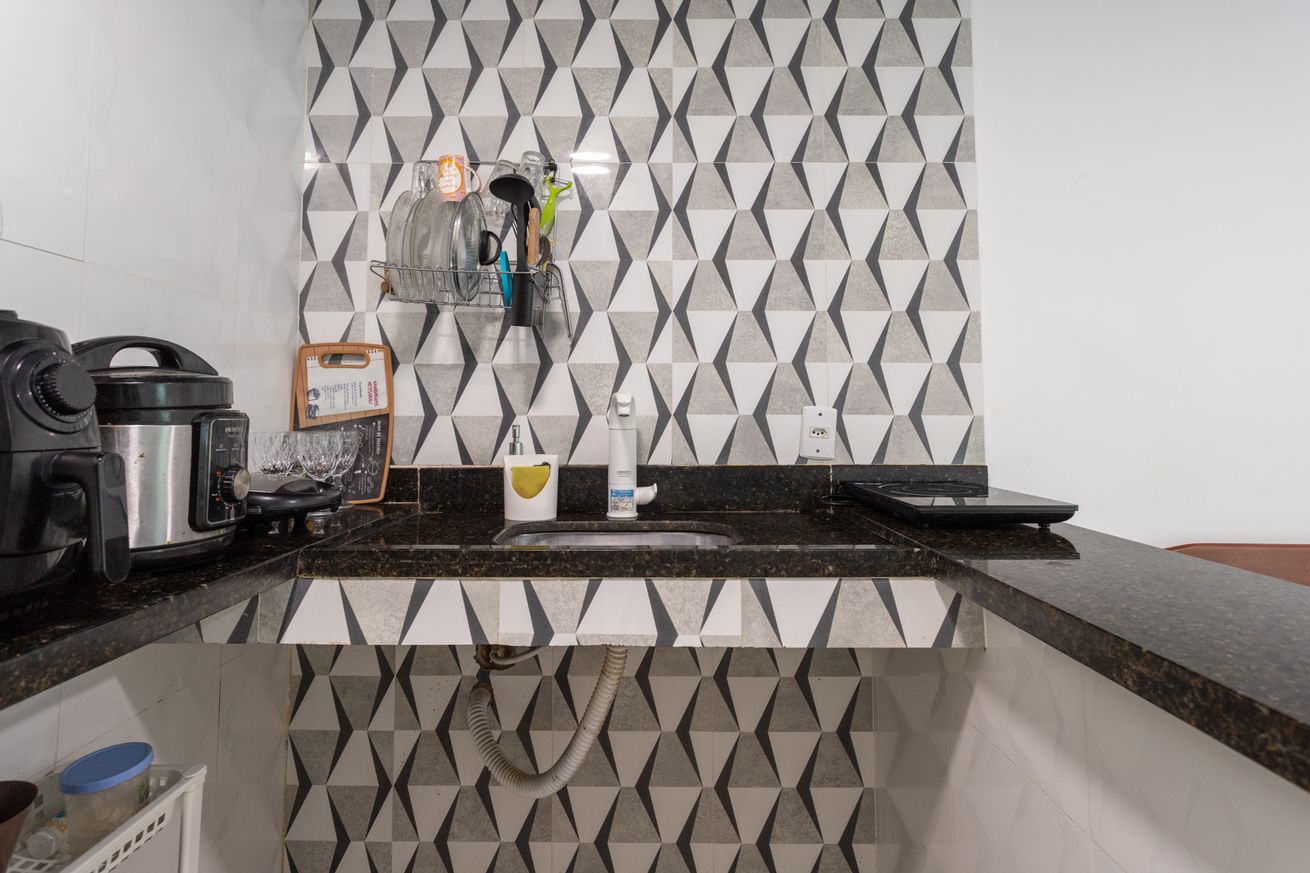 Espaço de cozinha completo para preparar suas refeições com conforto