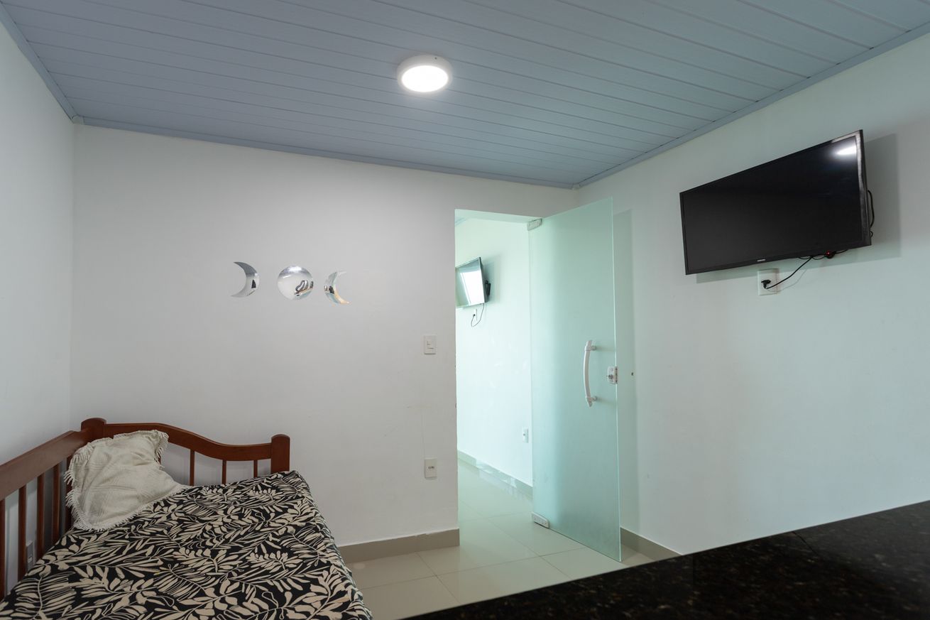 Quarto amplo com TV, ideal para descanso e momentos de lazer